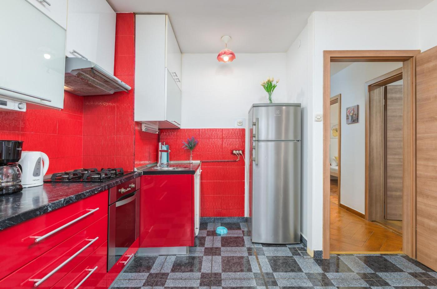 Apartament z 2 sypialniami. In the well-fitted kitchen, guests will find a refrigerator, a dishwasher, kitchenware and an oven. The air-conditioned apartment provides a flat-screen TV, a washing machine, a tea and coffee maker, a dining area as well as a quiet street view. The unit offers 4 beds. Apartament - 6 osobowy. Powierzchnia pokoju ok.: 52 mkw.
