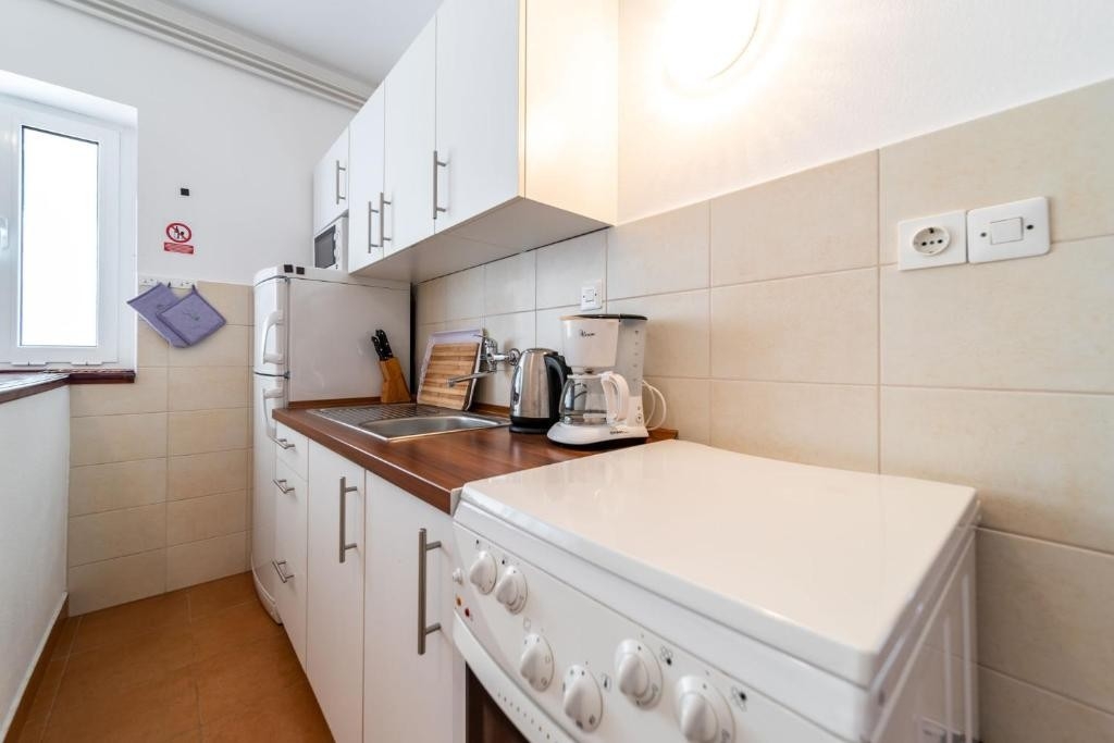 Apartament może przyjąć 3 gości. Łóżka znajdują się w sypialniach, których jest 1, oraz w pokoju dziennym, na powierzchni 35m2. Goście mają dostęp do tarasu, by korzystać z ciepłych, letnich wieczorów. Możliwość przygotowywania posiłków poprzez korzystanie ze wspólnego grilla. WLICZONE W CENĘ: taksa pobytowa, sprzątanie końcowe, parking, internet, suszarka do włosów. NIEOBOWIĄZKOWE KOSZTY DODATKOWE: klimatyzacja (5,00 € za nocleg). Dostępność dodatkowych usług w rezerwowanym terminie oraz ich cenę (jeśli nie jest podana) należy sprawdzić wcześniej. Za dodatowe usługi, które nie zostały uwzględnione w kalkulacji ceny, płaci się bezpośrednio właścicielowi obiektu, pod warunkiem śe gość korzysta z tych usług.