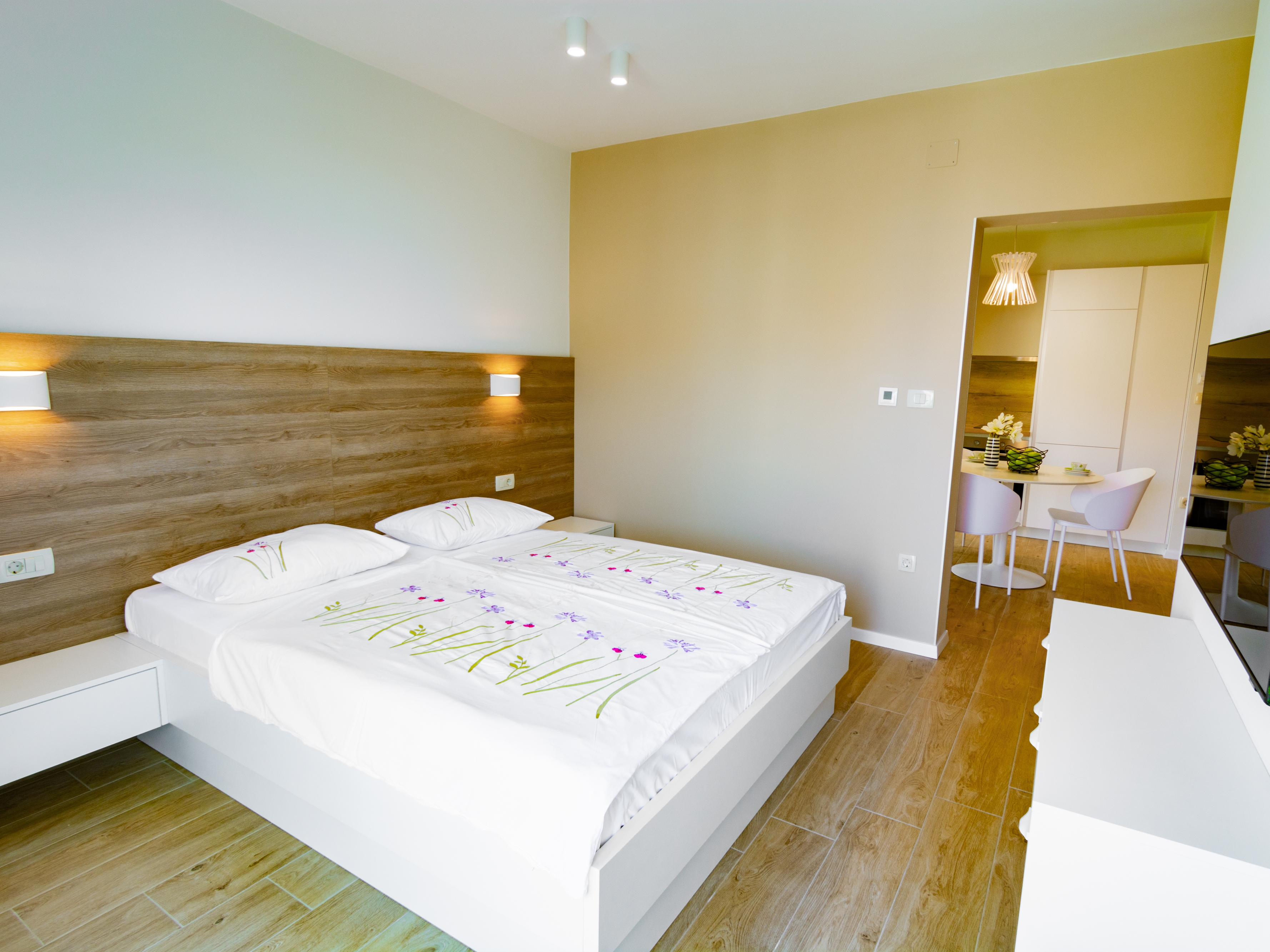 Studio może przyjąć 2 gości. Łóżka znajdują się w sypialniach, których jest 1, na powierzchni 27m2. Goście mają dostęp do balkonu, by korzystać z ciepłych, letnich wieczorów. Z apartamentu typu studio roztacza się widok na morze. WLICZONE W CENĘ: taksa pobytowa, sprzątanie końcowe, klimatyzacja, parking, internet, pranie bielizny, miejsce do cumowania łodzi, łóżeczko dziecięce, dostawka, żelazko, deska do prasowania, suszarka do włosów. Dostępność dodatkowych usług w rezerwowanym terminie oraz ich cenę (jeśli nie jest podana) należy sprawdzić wcześniej. Za dodatowe usługi, które nie zostały uwzględnione w kalkulacji ceny, płaci się bezpośrednio właścicielowi obiektu, pod warunkiem śe gość korzysta z tych usług.