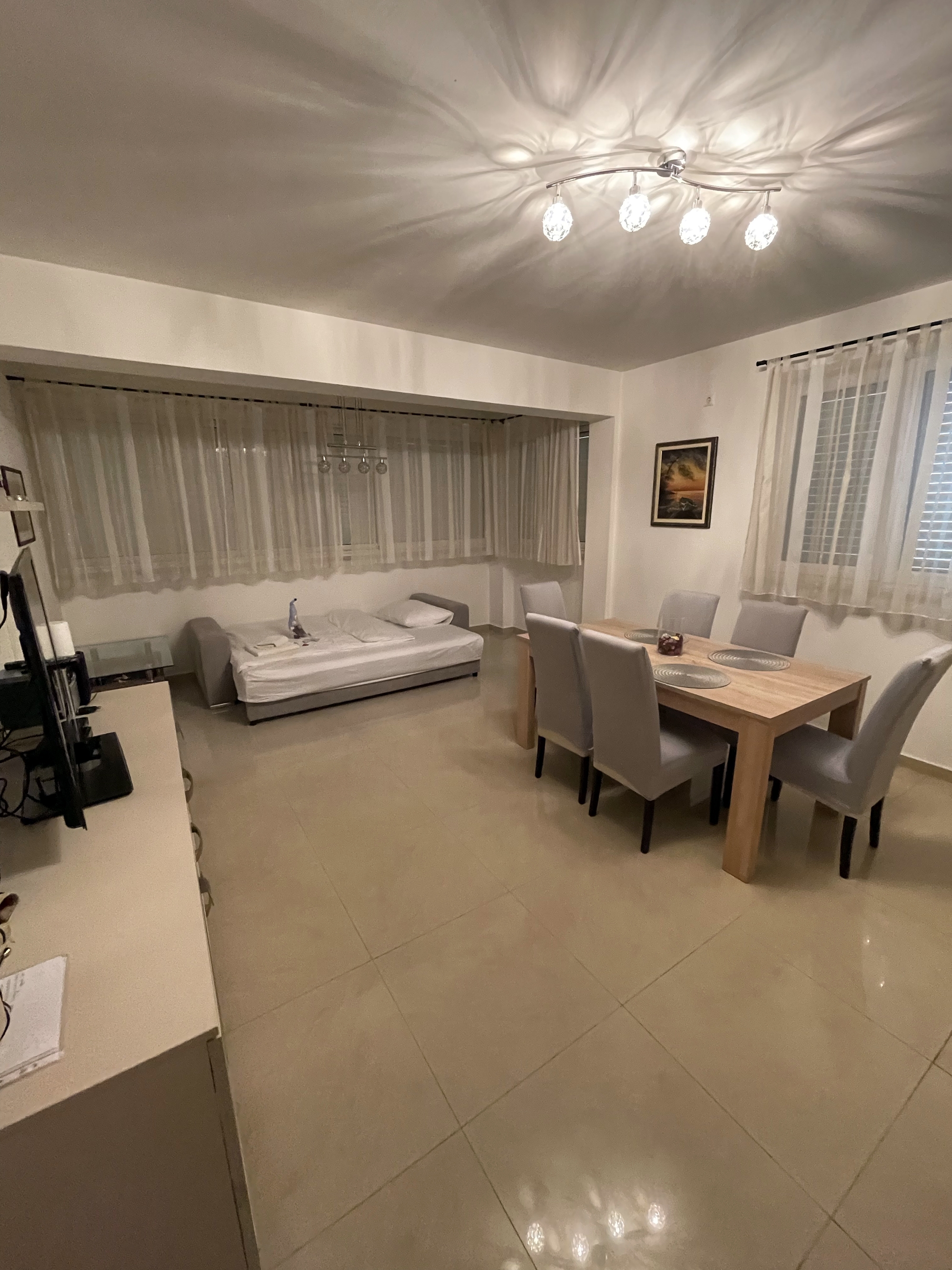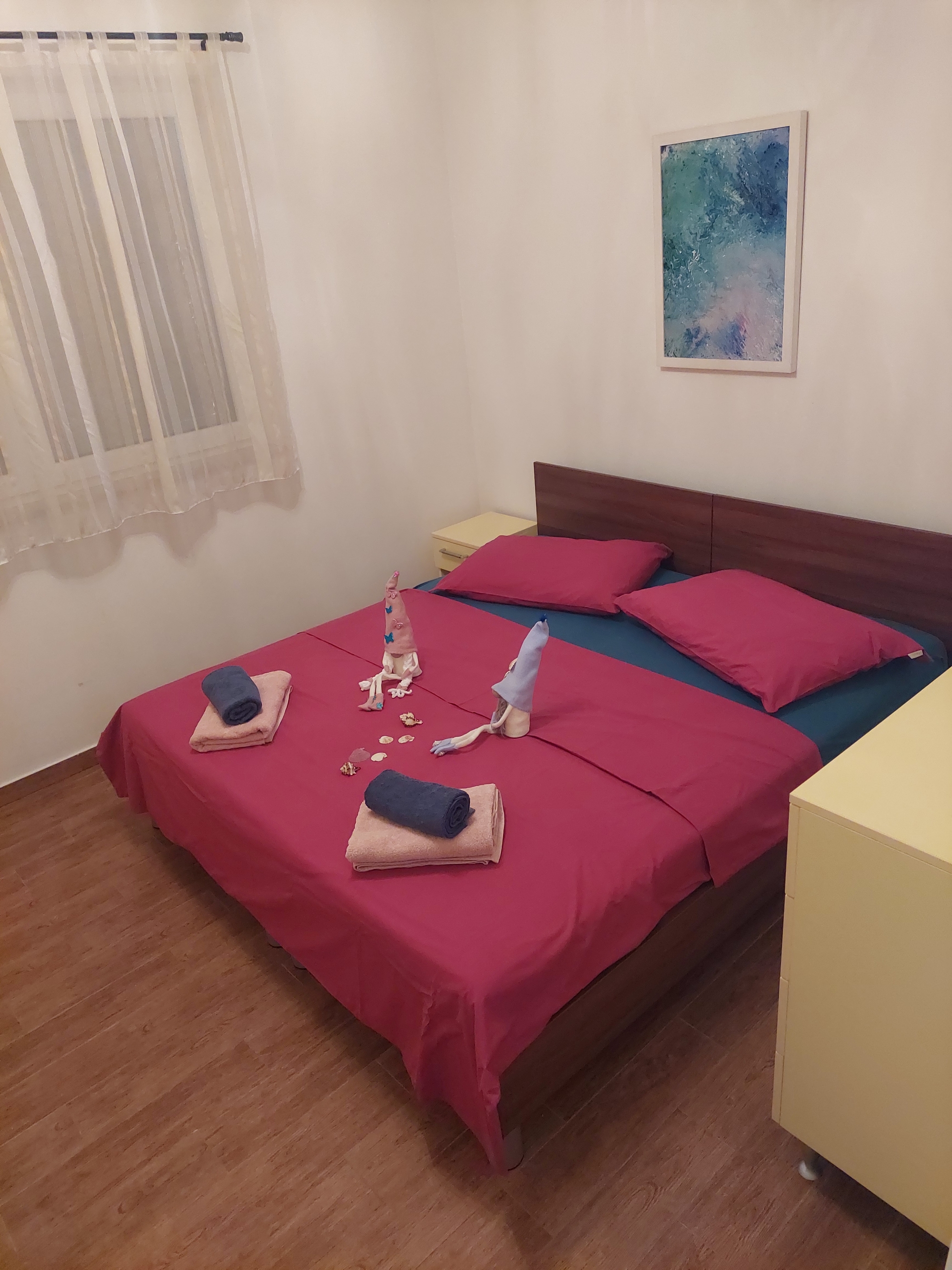 Apartament może przyjąć 4 gości. Łóżka znajdują się w sypialniach, których jest 1, oraz w pokoju dziennym, na powierzchni 47m2. Goście mają dostęp do tarasu, by korzystać z ciepłych, letnich wieczorów. Grill jest dostępny tylko do użytku gości z tej kwatery. WLICZONE W CENĘ: taksa pobytowa, sprzątanie końcowe, klimatyzacja, parking, internet, żelazko, deska do prasowania. Dostępność dodatkowych usług w rezerwowanym terminie oraz ich cenę (jeśli nie jest podana) należy sprawdzić wcześniej. Za dodatowe usługi, które nie zostały uwzględnione w kalkulacji ceny, płaci się bezpośrednio właścicielowi obiektu, pod warunkiem śe gość korzysta z tych usług. Zniżki od ceny podstawowej: bezpłatny dzień 14=13 (przy pobycie, trwającym co najmniej 14 dni, otrzymujecie jeden bezpłatny dzień na pobyt do 31.12.2026).