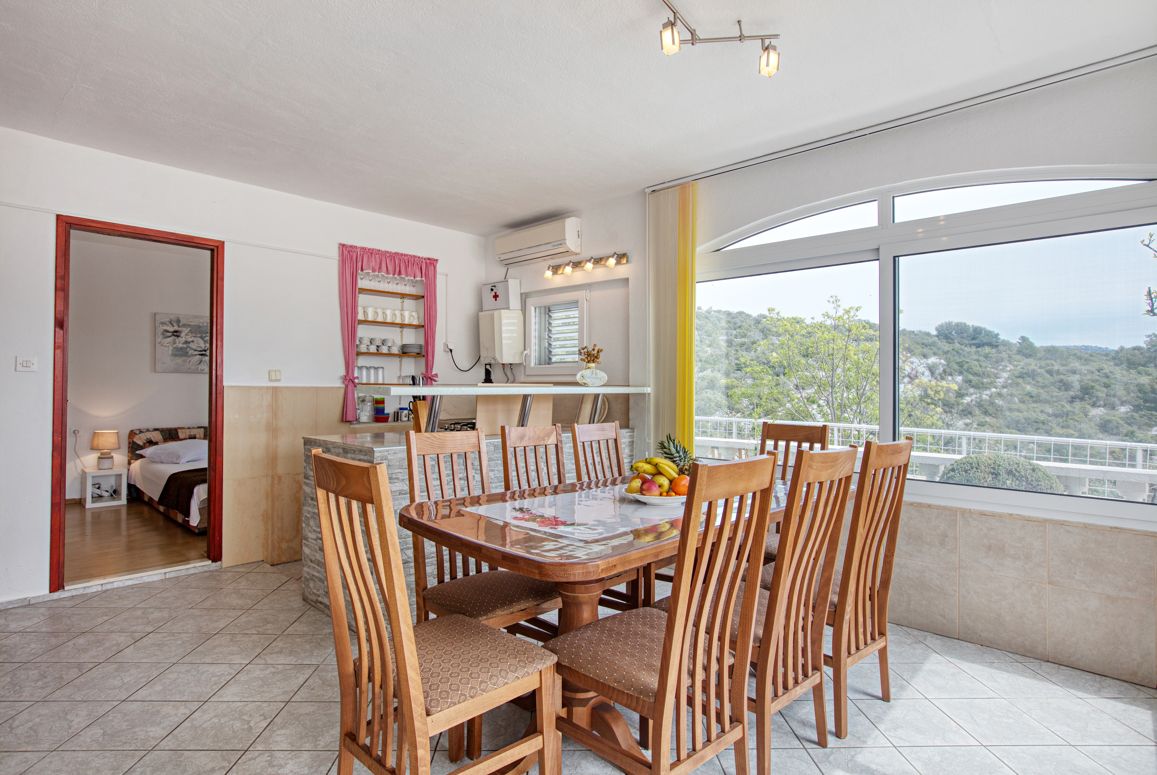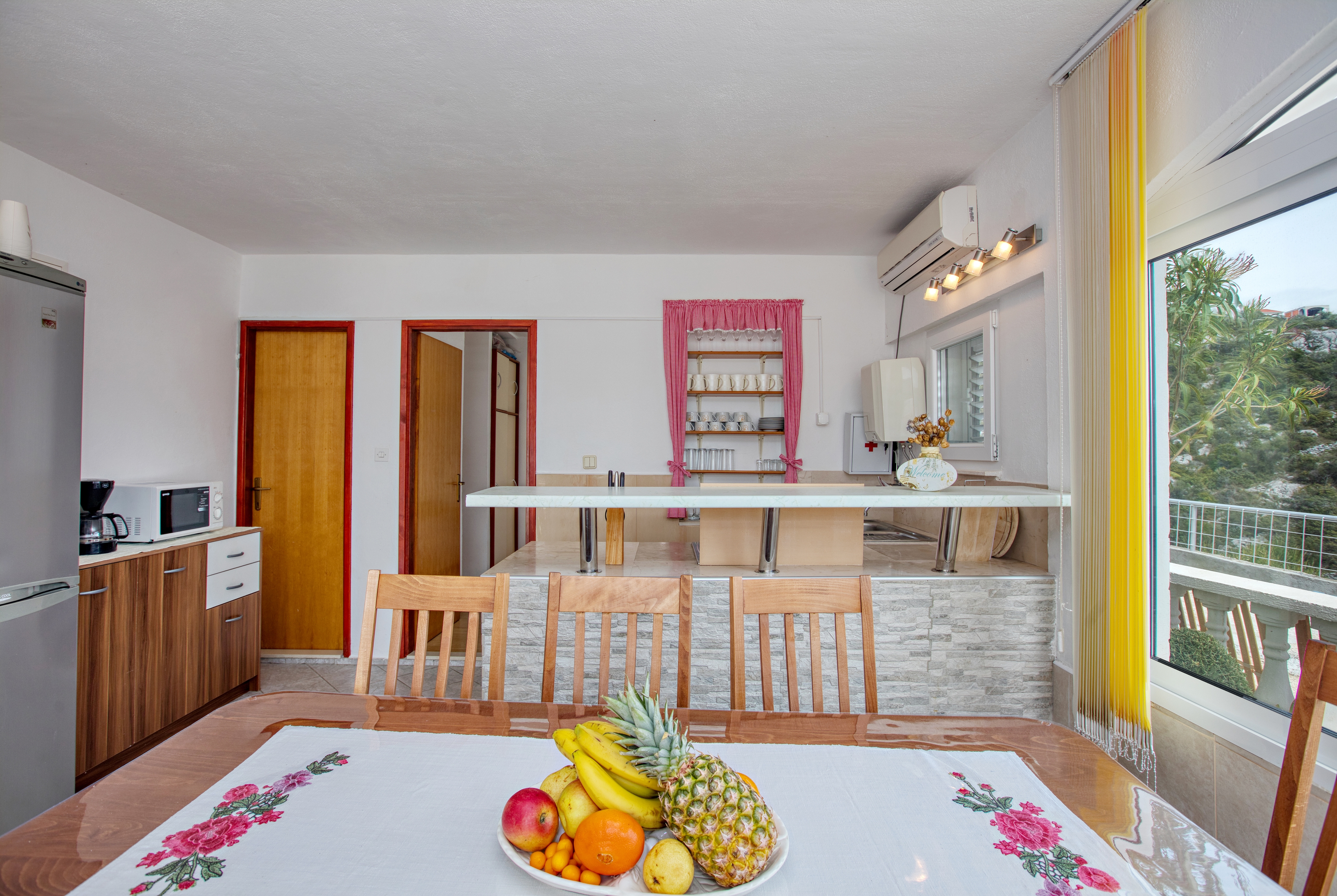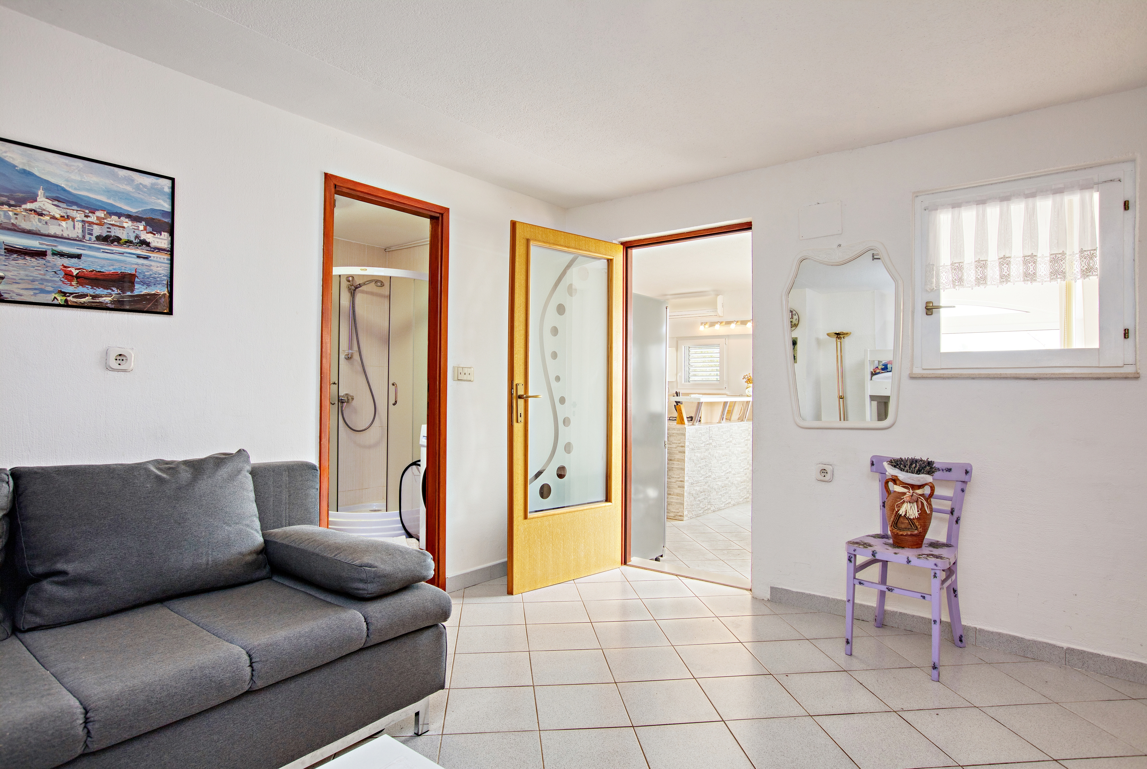 Apartament może przyjąć 8 gości. Łóżka znajdują się w sypialniach, których jest 2, oraz w pokoju dziennym, na powierzchni 65m2. Goście mają dostęp do tarasu, by korzystać z ciepłych, letnich wieczorów. Z apartamentu roztacza się widok na morze. Grill jest dostępny tylko do użytku gości z tej kwatery. WLICZONE W CENĘ: taksa pobytowa, sprzątanie końcowe, klimatyzacja, parking, internet, pranie bielizny, łóżeczko dziecięce, żelazko, suszarka do włosów. OBOWIĄZKOWE KOSZTY DODATKOWE: dopłata za krótki termin (procent dopłaty w zalezności od liczby noclegów: 30% - 1, 20% - 2, 10% - 3). NIEOBOWIĄZKOWE KOSZTY DODATKOWE: dostawka (5,00 € za nocleg). Dostępność dodatkowych usług w rezerwowanym terminie oraz ich cenę (jeśli nie jest podana) należy sprawdzić wcześniej. Za dodatowe usługi, które nie zostały uwzględnione w kalkulacji ceny, płaci się bezpośrednio właścicielowi obiektu, pod warunkiem śe gość korzysta z tych usług. Zniżki od ceny podstawowej: bezpłatny dzień 21=19 (przy pobycie, trwającym co najmniej 21 dni, trzymujecie dwa bezpłatne dni na pobyt do 31.12.2026).
