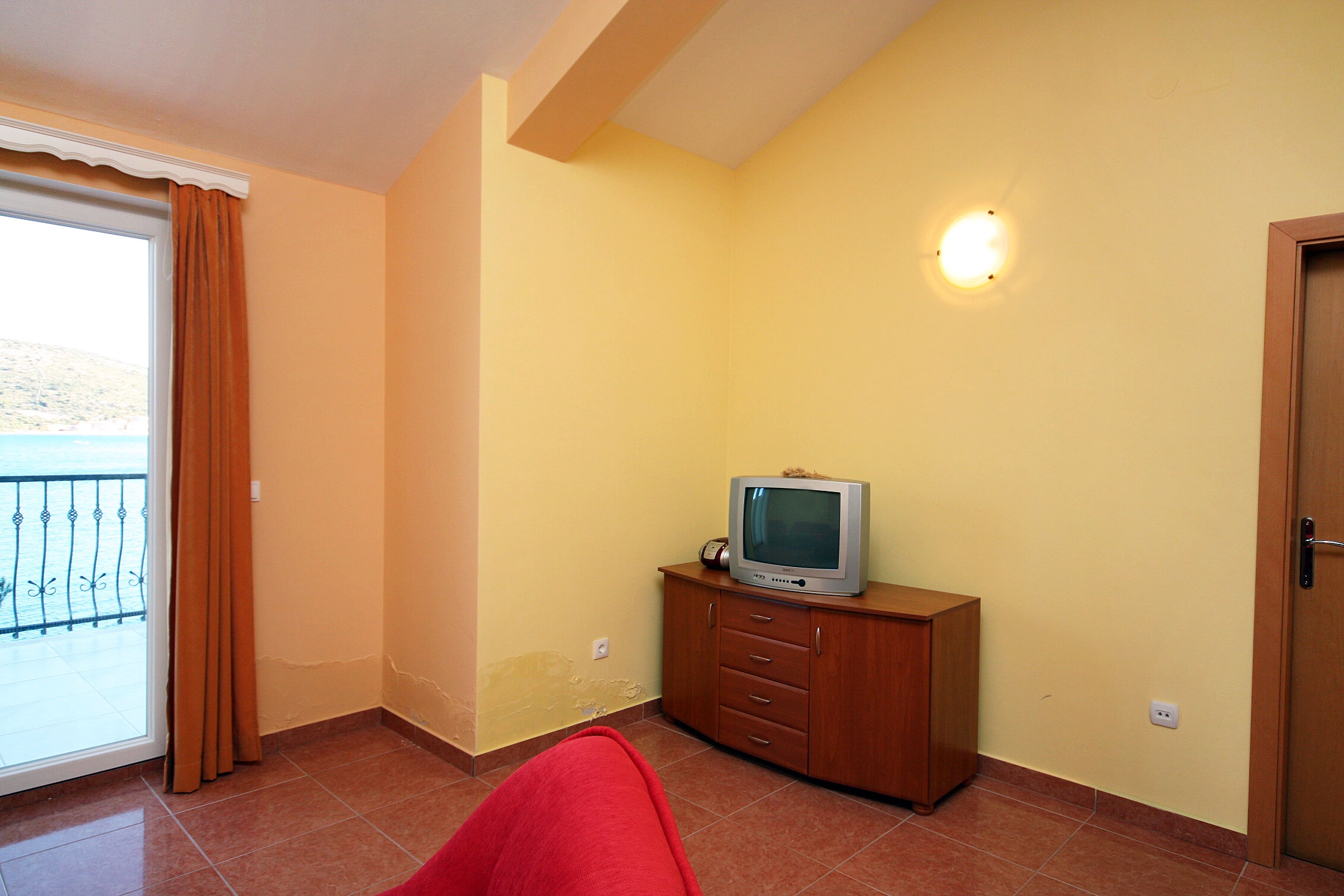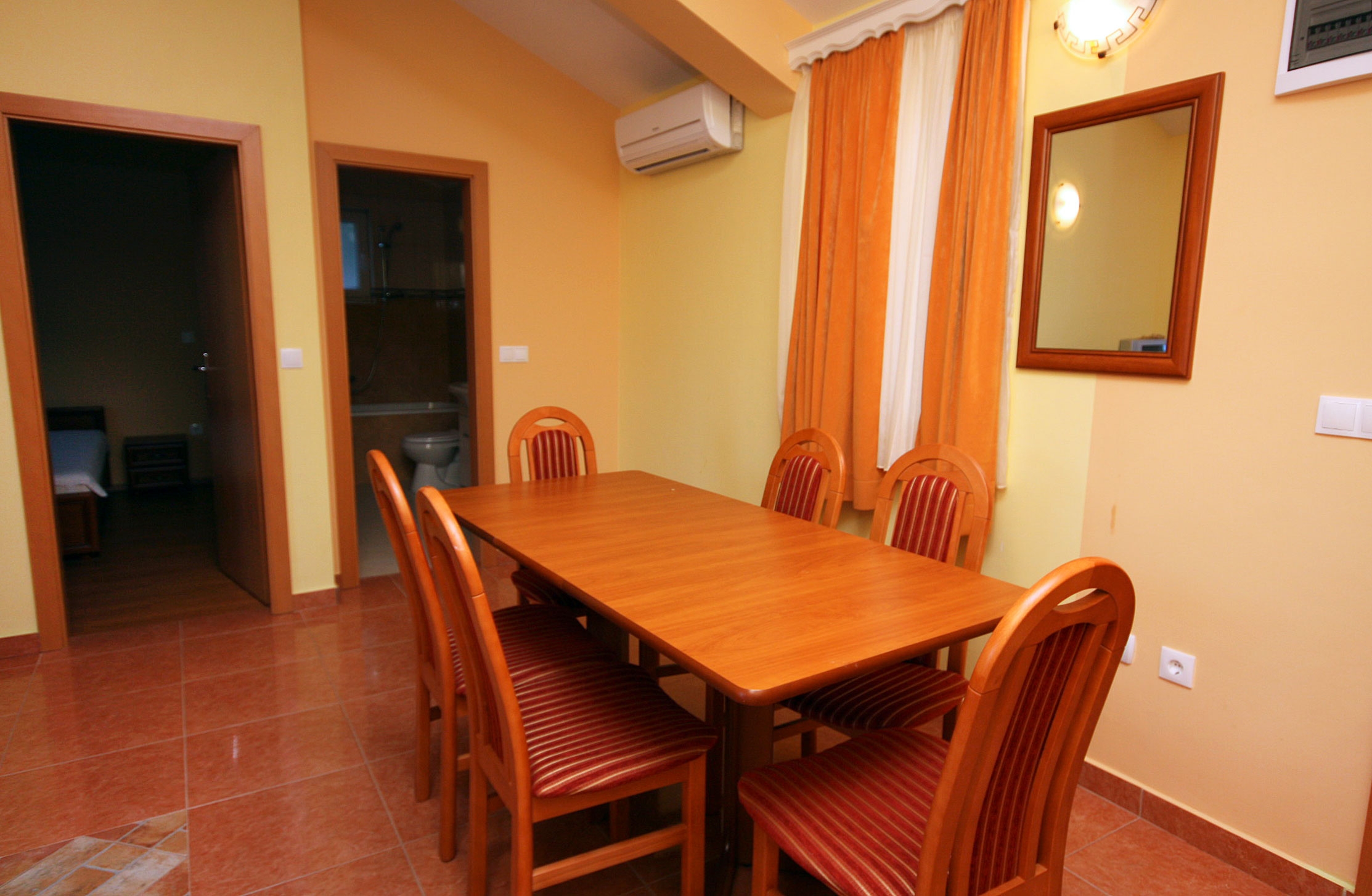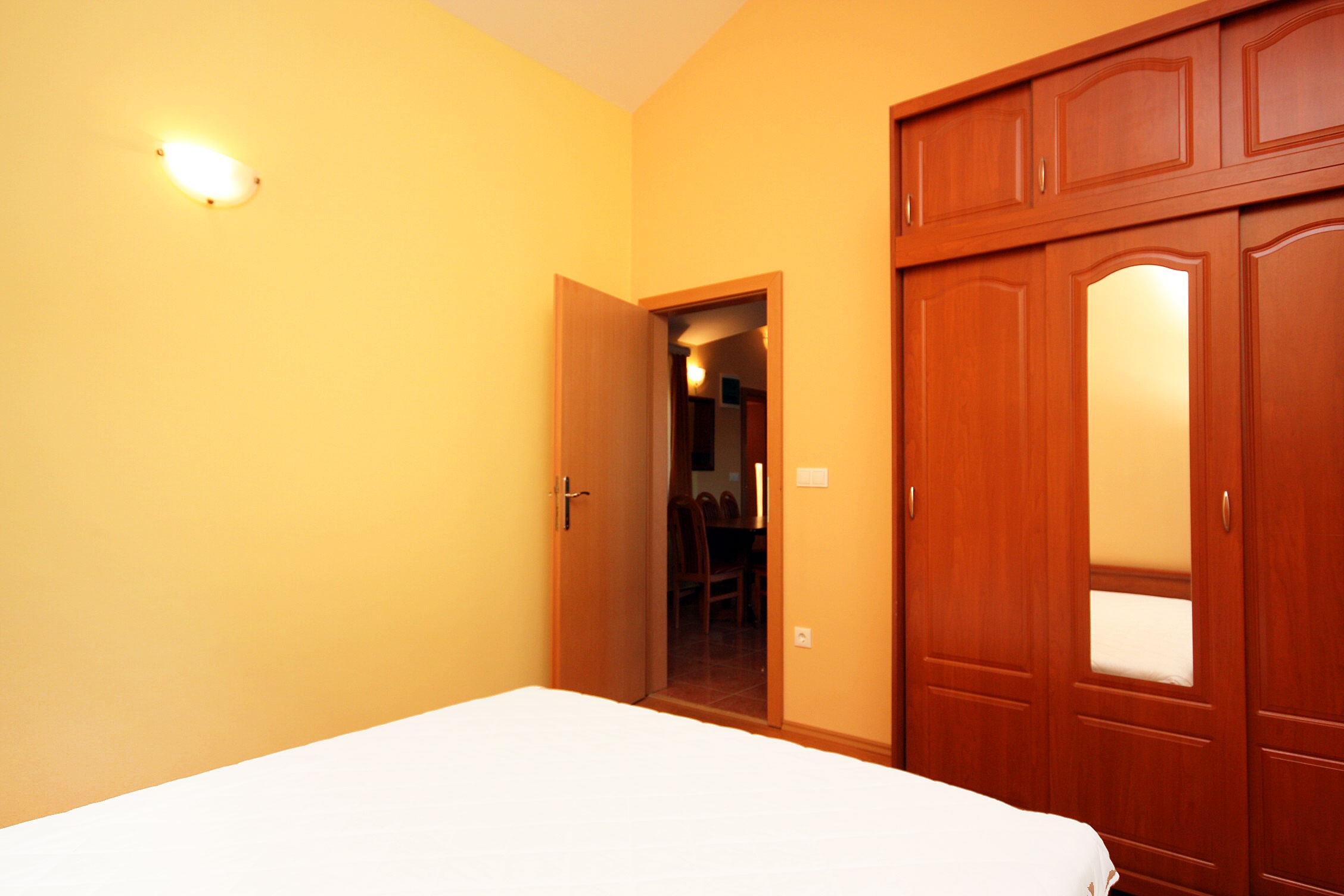 Apartament może przyjąć 4 gości. Łóżka znajdują się w sypialniach, których jest 1, oraz w pokoju dziennym, na powierzchni 56m2. Goście mają dostęp do tarasu, by korzystać z ciepłych, letnich wieczorów. Z apartamentu roztacza się widok na morze. Możliwość przygotowywania posiłków poprzez korzystanie ze wspólnego grilla. W kwaterze dozwolony jest pobyt zwierzęcia domowego, za dopłatą. W rezerwowanej kwaterze na miejscu jest pobierana kaucja (jej wysokość jest podana na stronie). WLICZONE W CENĘ: taksa pobytowa, sprzątanie końcowe, klimatyzacja, parking, internet, łóżeczko dziecięce, suszarka do włosów. OBOWIĄZKOWE KOSZTY DODATKOWE: depozyt (100,00 € jednorazowo), dopłata za krótki termin (procent dopłaty w zalezności od liczby noclegów: 30% - 1, 20% - 2, 10% - 3). NIEOBOWIĄZKOWE KOSZTY DODATKOWE: pranie bielizny (5,00 € pranie), miejsce do cumowania łodzi (25,00 € za nocleg), zwierzęta domowe (20,00 € za nocleg). Dostępność dodatkowych usług w rezerwowanym terminie oraz ich cenę (jeśli nie jest podana) należy sprawdzić wcześniej. Za dodatowe usługi, które nie zostały uwzględnione w kalkulacji ceny, płaci się bezpośrednio właścicielowi obiektu, pod warunkiem śe gość korzysta z tych usług.