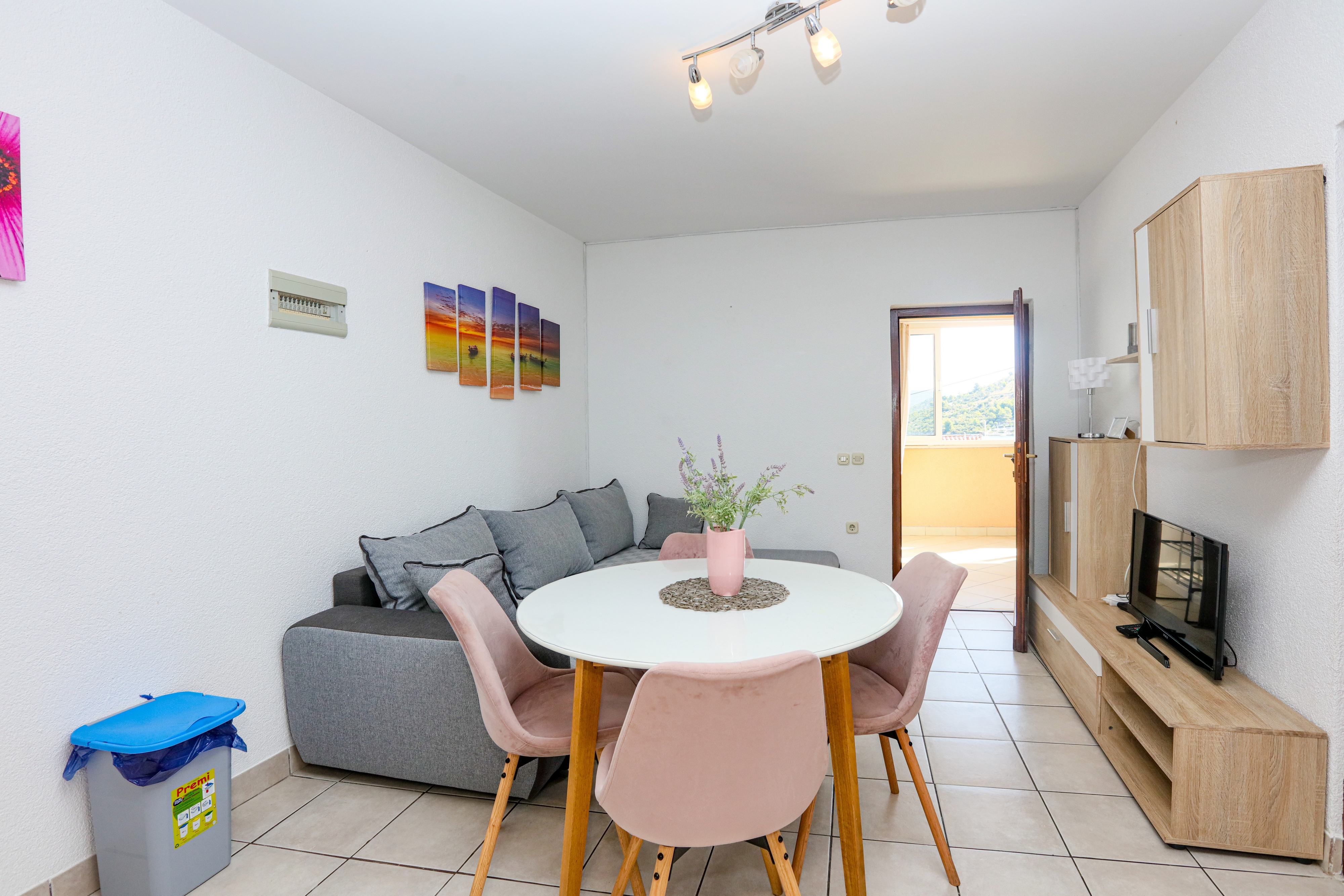 Apartament może przyjąć 5 gości. Łóżka znajdują się w sypialniach, których jest 2, oraz w pokoju dziennym, na powierzchni 44m2. Goście mają dostęp do tarasu, by korzystać z ciepłych, letnich wieczorów. Z apartamentu roztacza się widok na morze. Możliwość przygotowywania posiłków poprzez korzystanie ze wspólnego grilla. WLICZONE W CENĘ: taksa pobytowa, sprzątanie końcowe, klimatyzacja, parking, internet, łóżeczko dziecięce, żelazko, deska do prasowania, suszarka do włosów. OBOWIĄZKOWE KOSZTY DODATKOWE: dopłata za krótki termin (procent dopłaty w zalezności od liczby noclegów: 30% - 1, 20% - 2, 10% - 3). Dostępność dodatkowych usług w rezerwowanym terminie oraz ich cenę (jeśli nie jest podana) należy sprawdzić wcześniej. Za dodatowe usługi, które nie zostały uwzględnione w kalkulacji ceny, płaci się bezpośrednio właścicielowi obiektu, pod warunkiem śe gość korzysta z tych usług. Zniżki od ceny podstawowej: bezpłatny dzień 14=13 (przy pobycie, trwającym co najmniej 14 dni, otrzymujecie jeden bezpłatny dzień na pobyt do 31.12.2026).