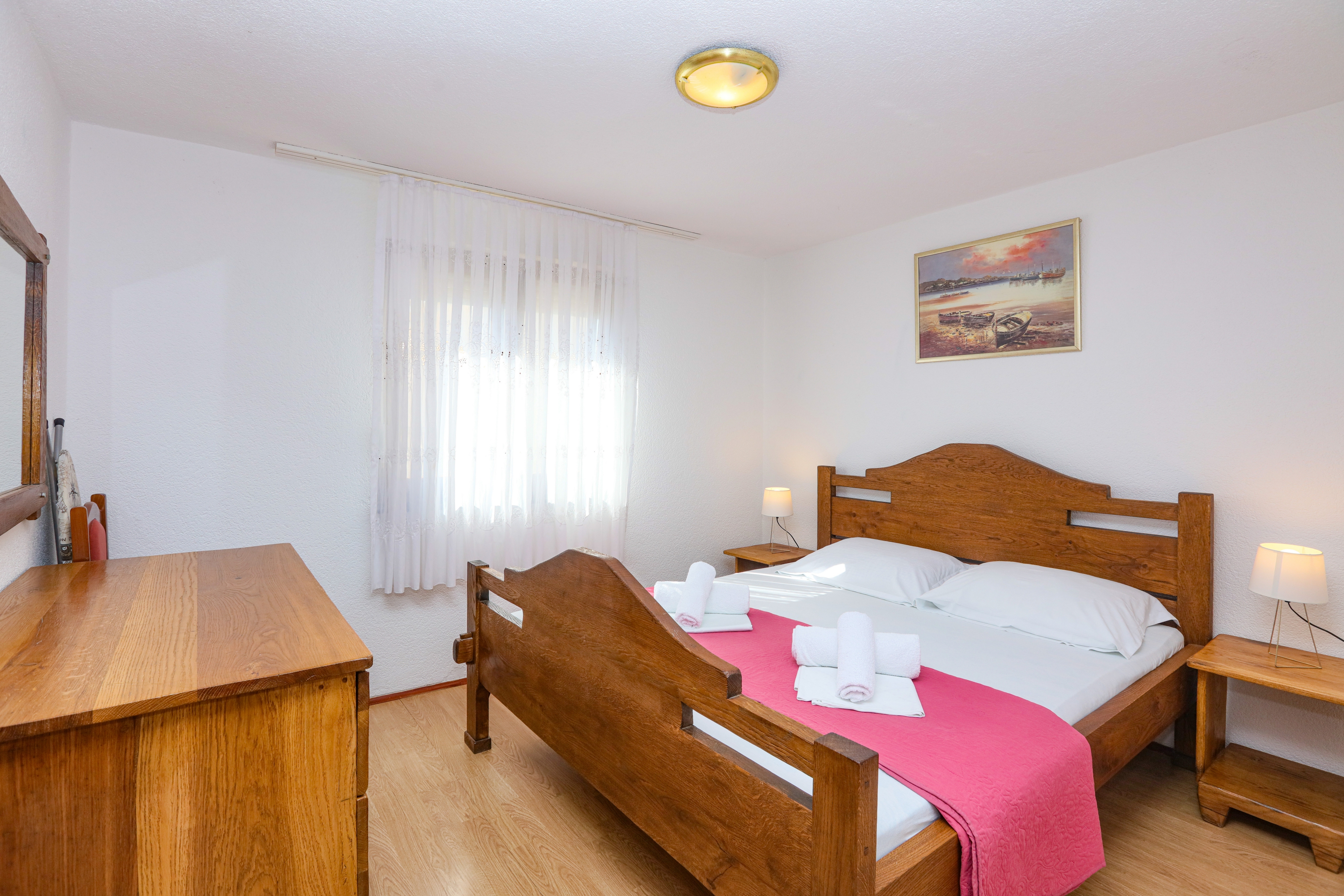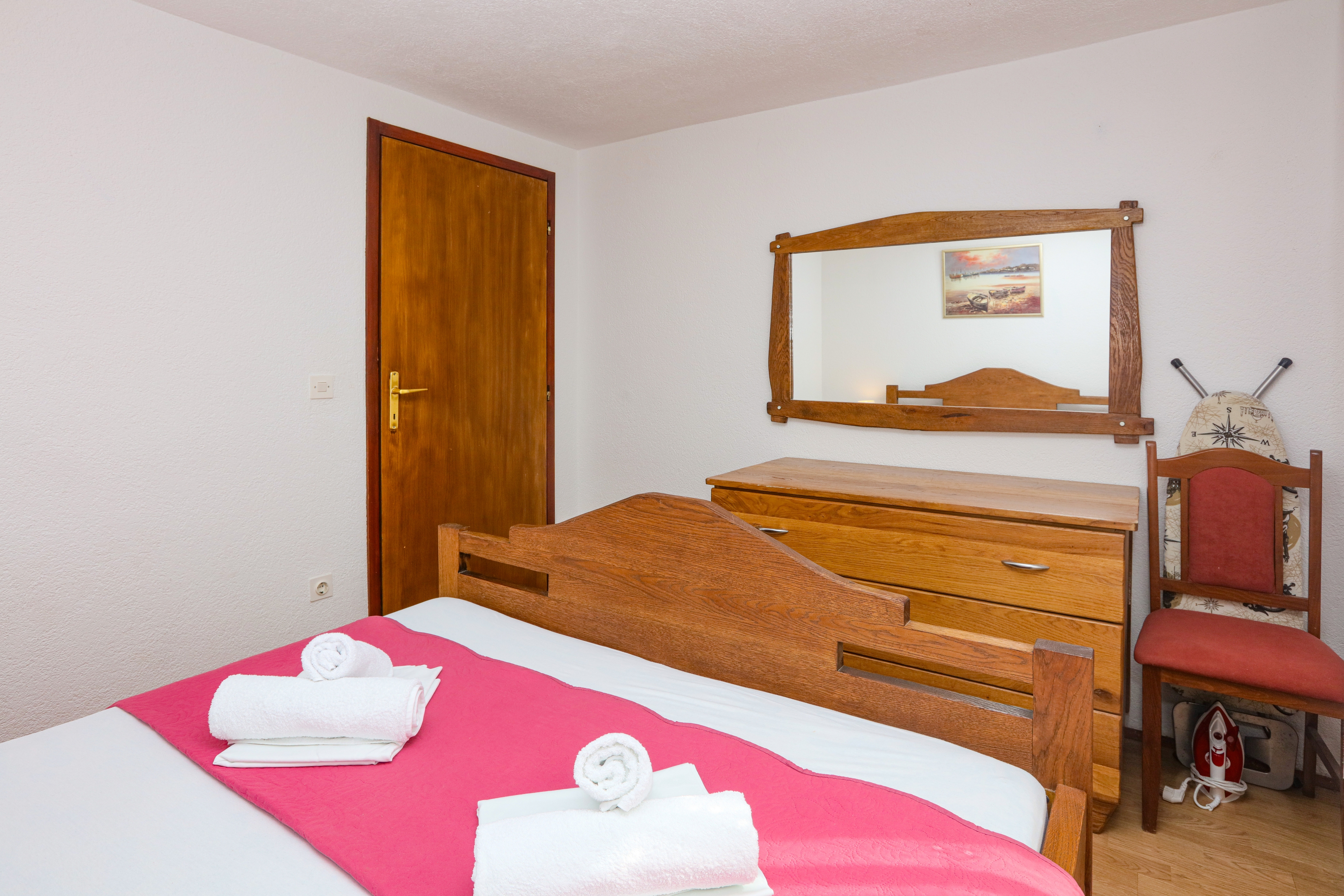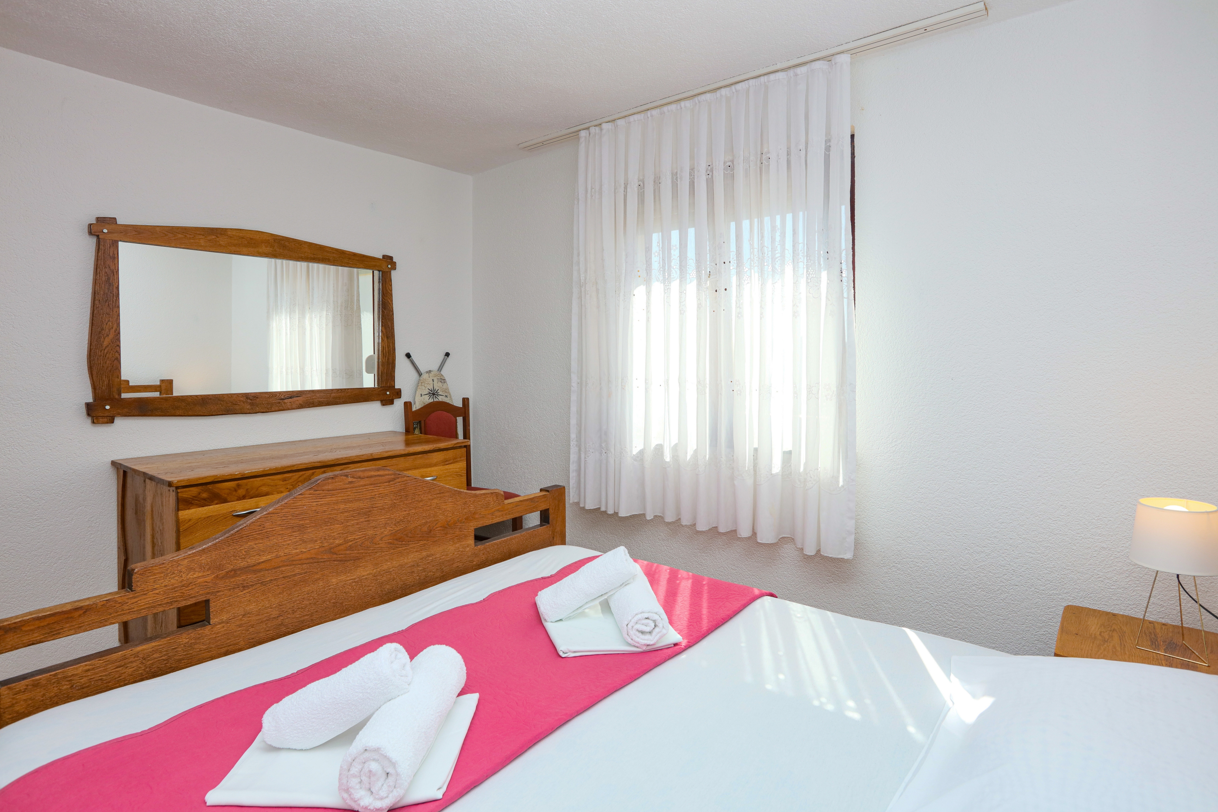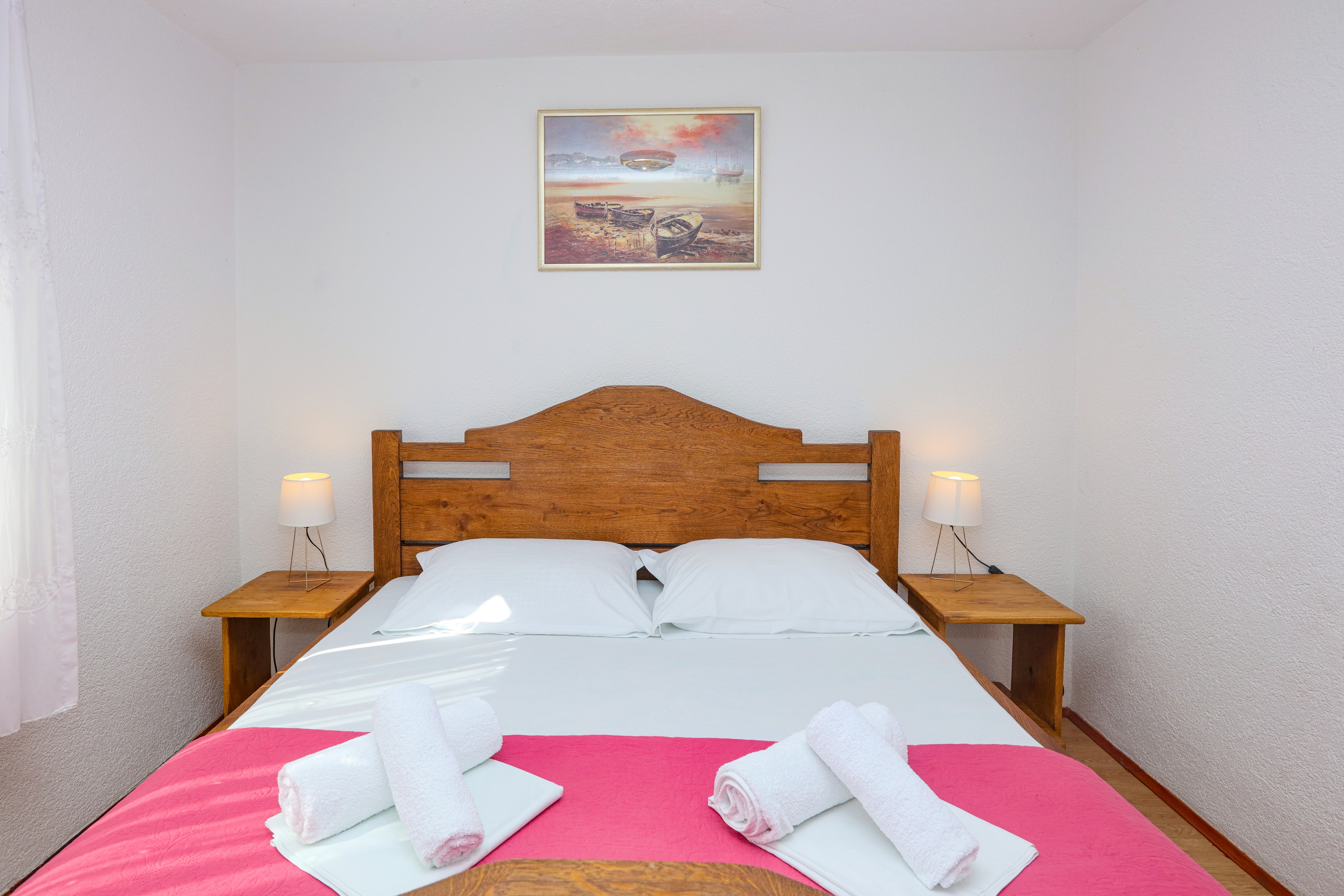 Apartament może przyjąć 5 gości. Łóżka znajdują się w sypialniach, których jest 2, oraz w pokoju dziennym, na powierzchni 45m2. Goście mają dostęp do tarasu, by korzystać z ciepłych, letnich wieczorów. Z apartamentu roztacza się widok na morze. Możliwość przygotowywania posiłków poprzez korzystanie ze wspólnego grilla. WLICZONE W CENĘ: taksa pobytowa, sprzątanie końcowe, klimatyzacja, parking, internet, łóżeczko dziecięce, żelazko, deska do prasowania, suszarka do włosów. OBOWIĄZKOWE KOSZTY DODATKOWE: dopłata za krótki termin (procent dopłaty w zalezności od liczby noclegów: 30% - 1, 20% - 2, 10% - 3). Dostępność dodatkowych usług w rezerwowanym terminie oraz ich cenę (jeśli nie jest podana) należy sprawdzić wcześniej. Za dodatowe usługi, które nie zostały uwzględnione w kalkulacji ceny, płaci się bezpośrednio właścicielowi obiektu, pod warunkiem śe gość korzysta z tych usług. Zniżki od ceny podstawowej: bezpłatny dzień 14=13 (przy pobycie, trwającym co najmniej 14 dni, otrzymujecie jeden bezpłatny dzień na pobyt do 31.12.2026).