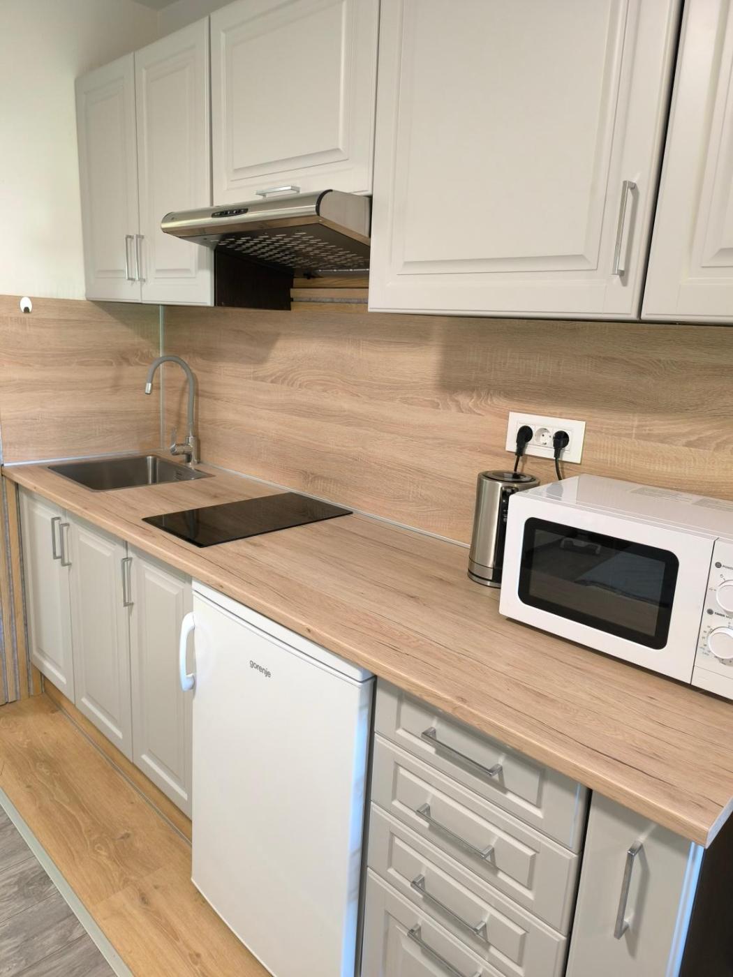 W apartamencie zapewniono sypialnię (1), salon, kuchnię z pełnym wyposażeniem oraz łazienkę (1).