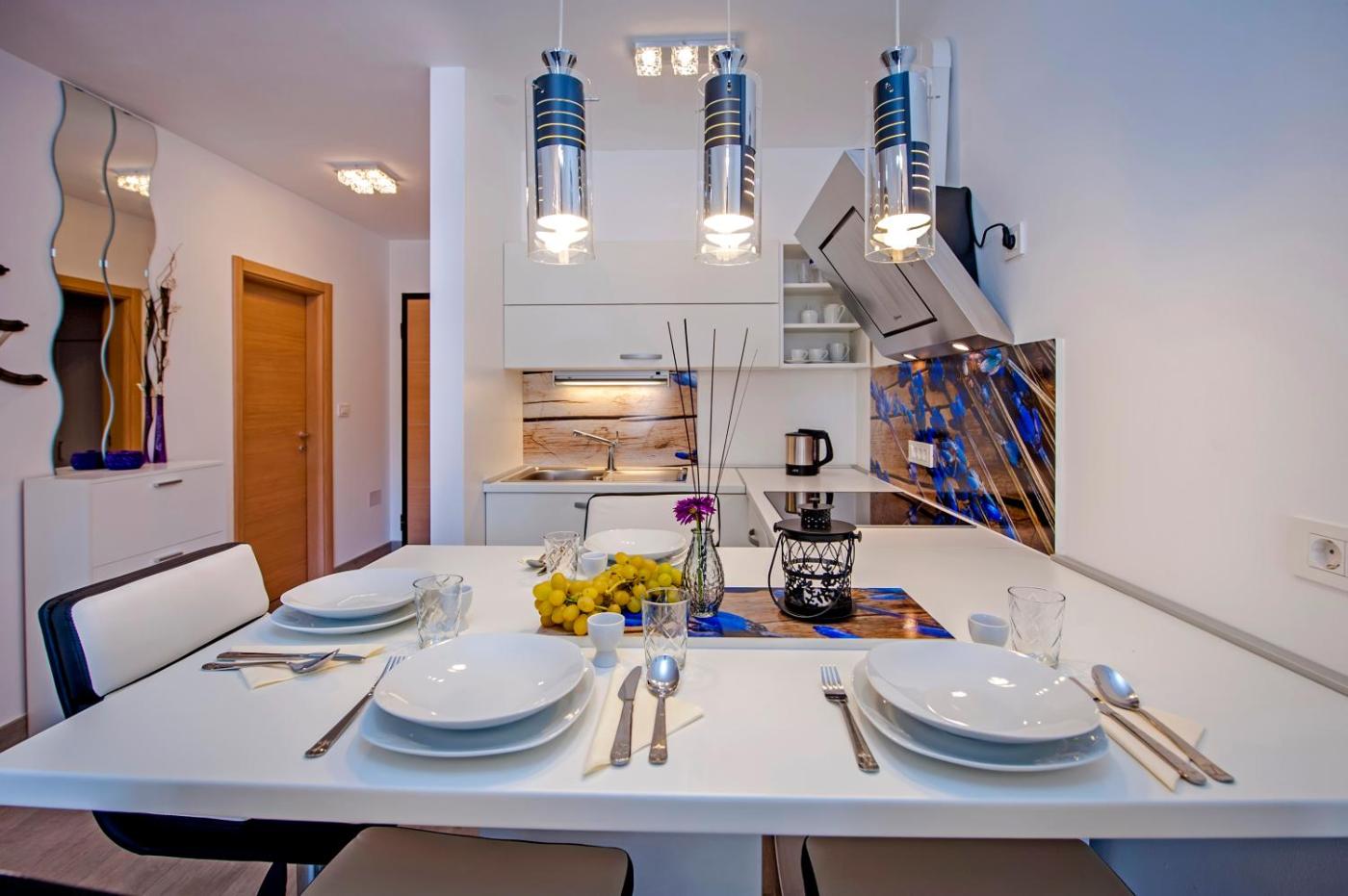 Oferta apartamentu obejmuje sypialnię (1), salon, kuchnię z pełnym wyposażeniem, w tym lodówką i ekspresem do kawy, a także łazienkę (1) z bidetem oraz prysznicem. Ten 4-gwiazdkowy apartament zapewnia bezpłatne Wi-Fi we wszystkich pomieszczeniach. Na miejscu dostępny jest też bezpłatny prywatny parking.