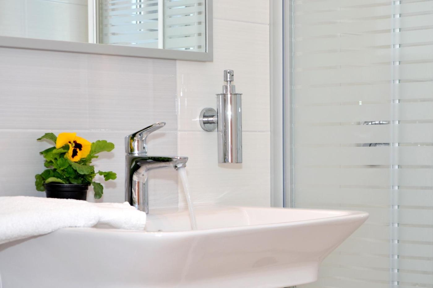 W miejscach zakwaterowania gości oraz ważnych częściach wspólnych znajdują się środki do dezynfekcji rąk
