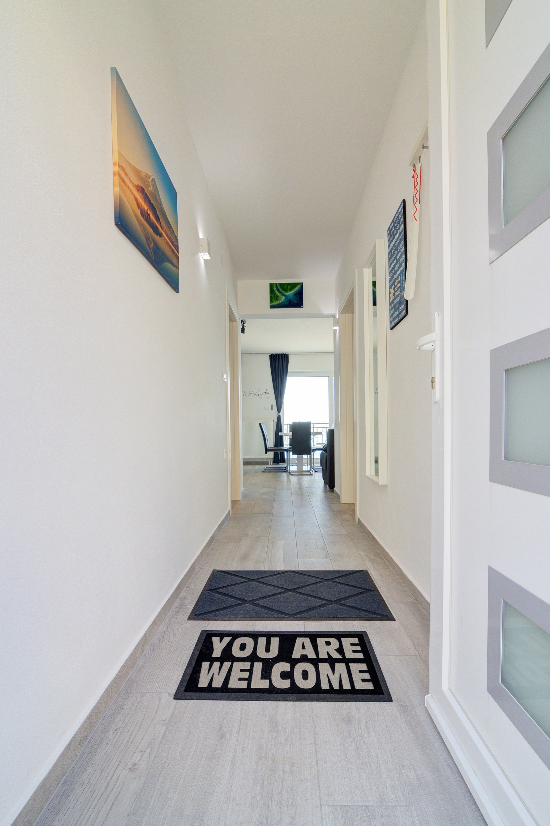 Apartament może przyjąć 6 gości. Łóżka znajdują się w sypialniach, których jest 2, oraz w pokoju dziennym, na powierzchni 70m2. Goście mają dostęp do balkonu, by korzystać z ciepłych, letnich wieczorów. Z apartamentu roztacza się widok na morze. W kwaterze dozwolony jest pobyt zwierzęcia domowego, za dopłatą. WLICZONE W CENĘ: taksa pobytowa, sprzątanie końcowe, klimatyzacja, centralne ogrzewanie, internet, łóżeczko dziecięce, żelazko, deska do prasowania, suszarka do włosów. OBOWIĄZKOWE KOSZTY DODATKOWE: dopłata za krótki termin (procent dopłaty w zalezności od liczby noclegów: 30% - 1, 20% - 2, 10% - 3). NIEOBOWIĄZKOWE KOSZTY DODATKOWE: zwierzęta domowe (5,00 € za nocleg). Dostępność dodatkowych usług w rezerwowanym terminie oraz ich cenę (jeśli nie jest podana) należy sprawdzić wcześniej. Za dodatowe usługi, które nie zostały uwzględnione w kalkulacji ceny, płaci się bezpośrednio właścicielowi obiektu, pod warunkiem śe gość korzysta z tych usług.