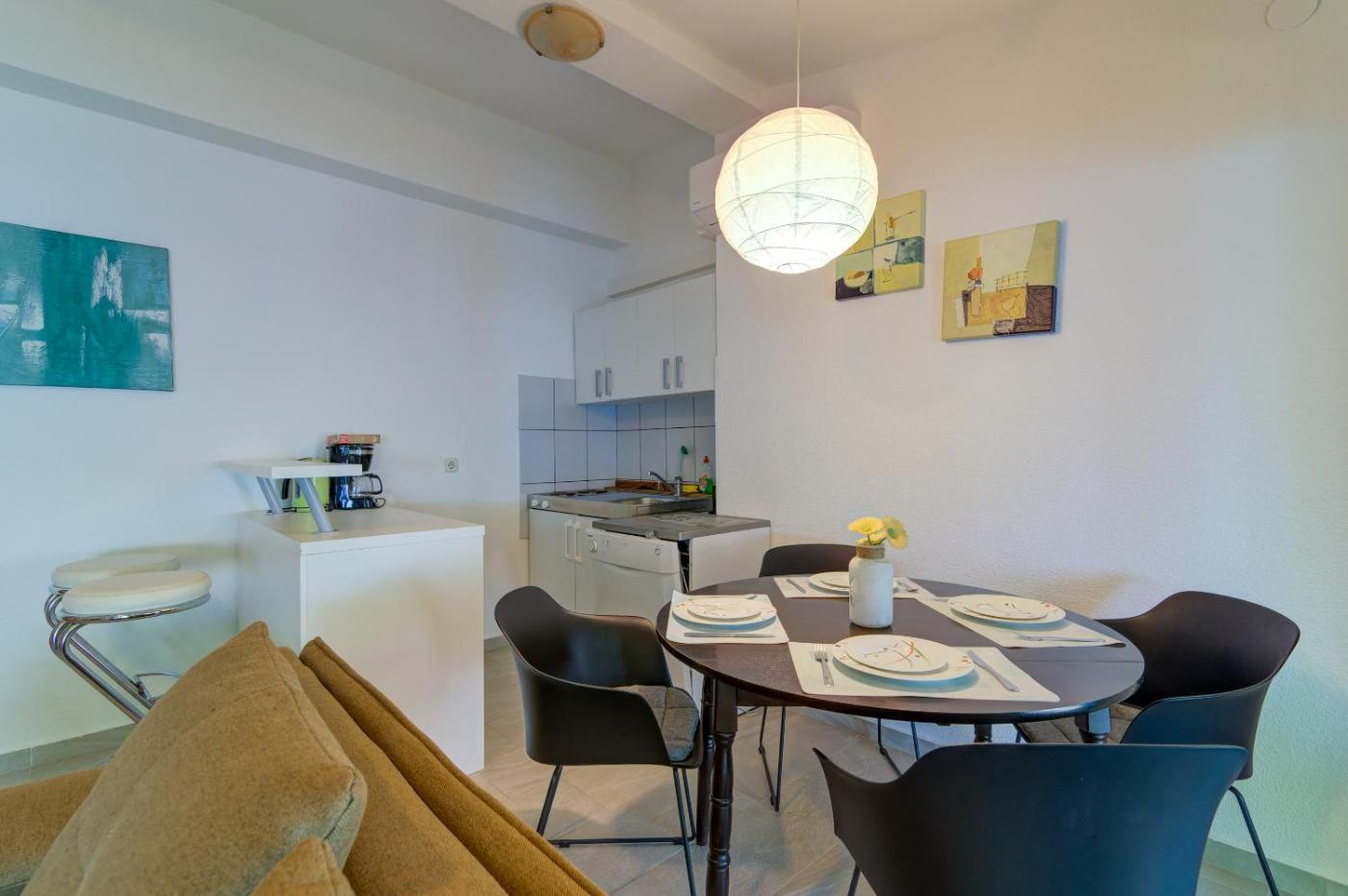 Studio. Guests will find a stovetop, a refrigerator, kitchenware and a microwave in the fully equipped kitchen. The studio also offers a barbecue. This air-conditioned studio includes a flat-screen TV with streaming services, a private bathroom as well as a terrace with sea views. The unit offers 1 bed. Studio - 2 osobowy. Powierzchnia pokoju ok.: 20 mkw. ;