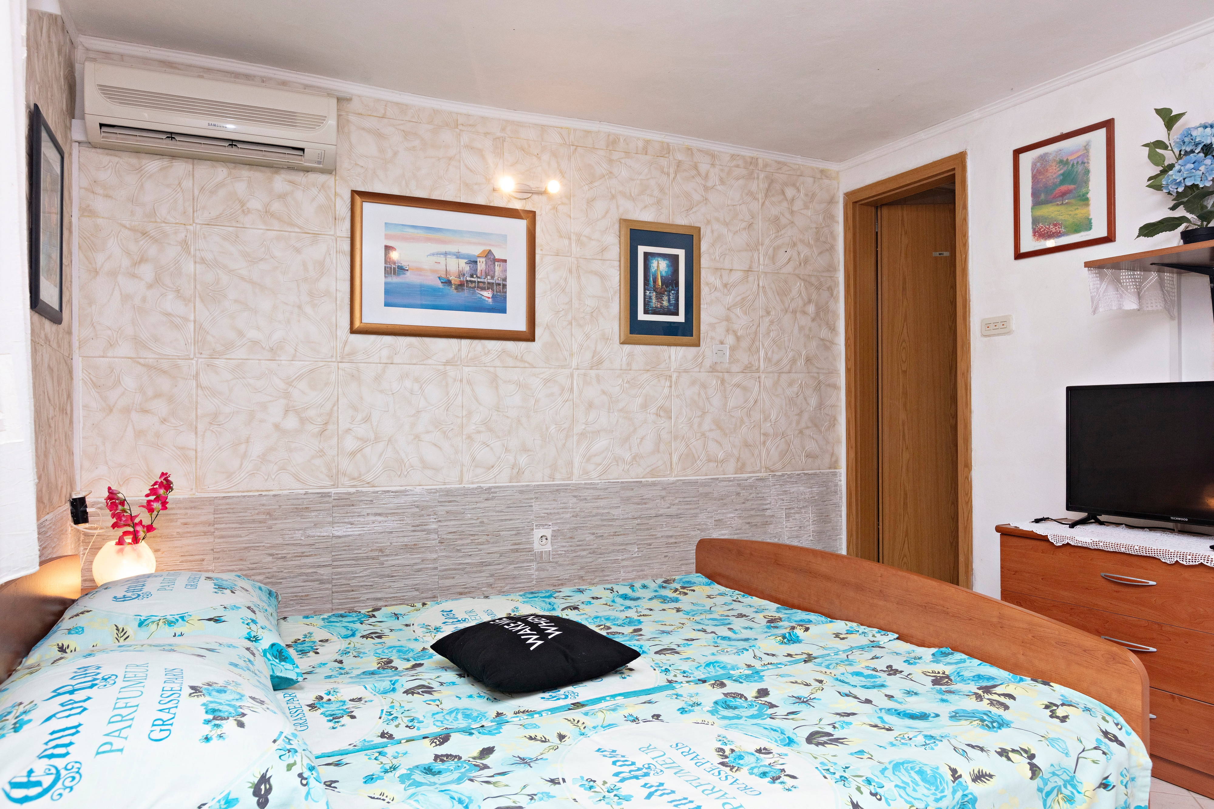 Apartament może przyjąć 5 gości. Łóżka znajdują się w sypialniach, których jest 2, na powierzchni 50m2. Goście mają dostęp do tarasu, by korzystać z ciepłych, letnich wieczorów. Możliwość przygotowywania posiłków poprzez korzystanie ze wspólnego grilla. W kwaterze dozwolony jest pobyt zwierzęcia domowego, za dopłatą. WLICZONE W CENĘ: taksa pobytowa, sprzątanie końcowe, parking, internet, miejsce do cumowania łodzi, suszarka do włosów. NIEOBOWIĄZKOWE KOSZTY DODATKOWE: klimatyzacja (3,00 € za nocleg), pranie bielizny (5,00 € pranie), zwierzęta domowe (5,00 € za nocleg), rower (10,00 € za dzień (za sztukę)). Dostępność dodatkowych usług w rezerwowanym terminie oraz ich cenę (jeśli nie jest podana) należy sprawdzić wcześniej. Za dodatowe usługi, które nie zostały uwzględnione w kalkulacji ceny, płaci się bezpośrednio właścicielowi obiektu, pod warunkiem śe gość korzysta z tych usług.