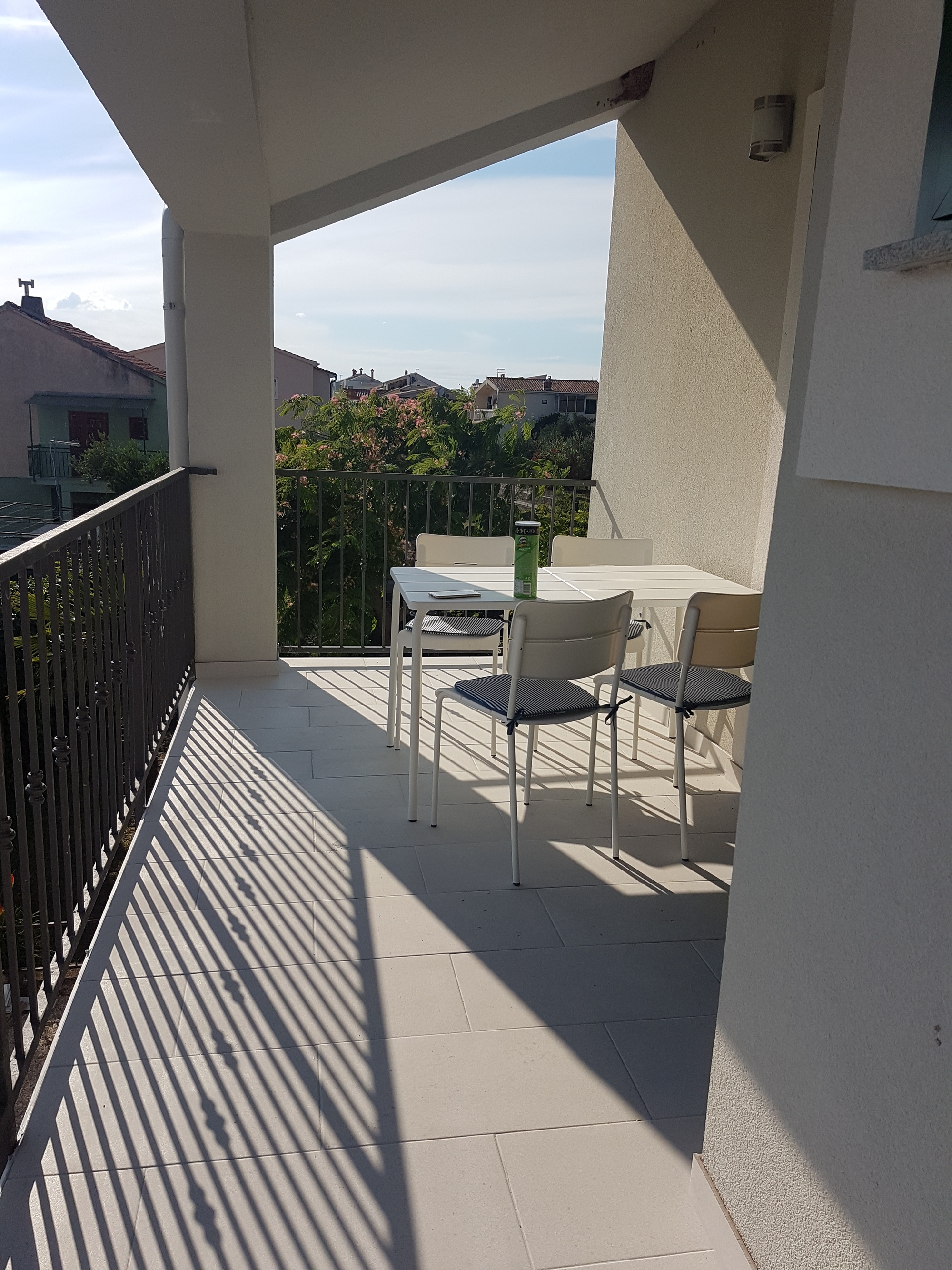 Apartament może przyjąć 5 gości. Łóżka znajdują się w sypialniach, których jest 2, oraz w pokoju dziennym, na powierzchni 36m2. Goście mają dostęp do tarasu, by korzystać z ciepłych, letnich wieczorów. Możliwość przygotowywania posiłków poprzez korzystanie ze wspólnego grilla. WLICZONE W CENĘ: taksa pobytowa, sprzątanie końcowe, klimatyzacja, parking, żelazko, deska do prasowania, suszarka do włosów. OBOWIĄZKOWE KOSZTY DODATKOWE: dopłata za krótki termin (procent dopłaty w zalezności od liczby noclegów: 30% - 1, 20% - 2, 10% - 3). Dostępność dodatkowych usług w rezerwowanym terminie oraz ich cenę (jeśli nie jest podana) należy sprawdzić wcześniej. Za dodatowe usługi, które nie zostały uwzględnione w kalkulacji ceny, płaci się bezpośrednio właścicielowi obiektu, pod warunkiem śe gość korzysta z tych usług.