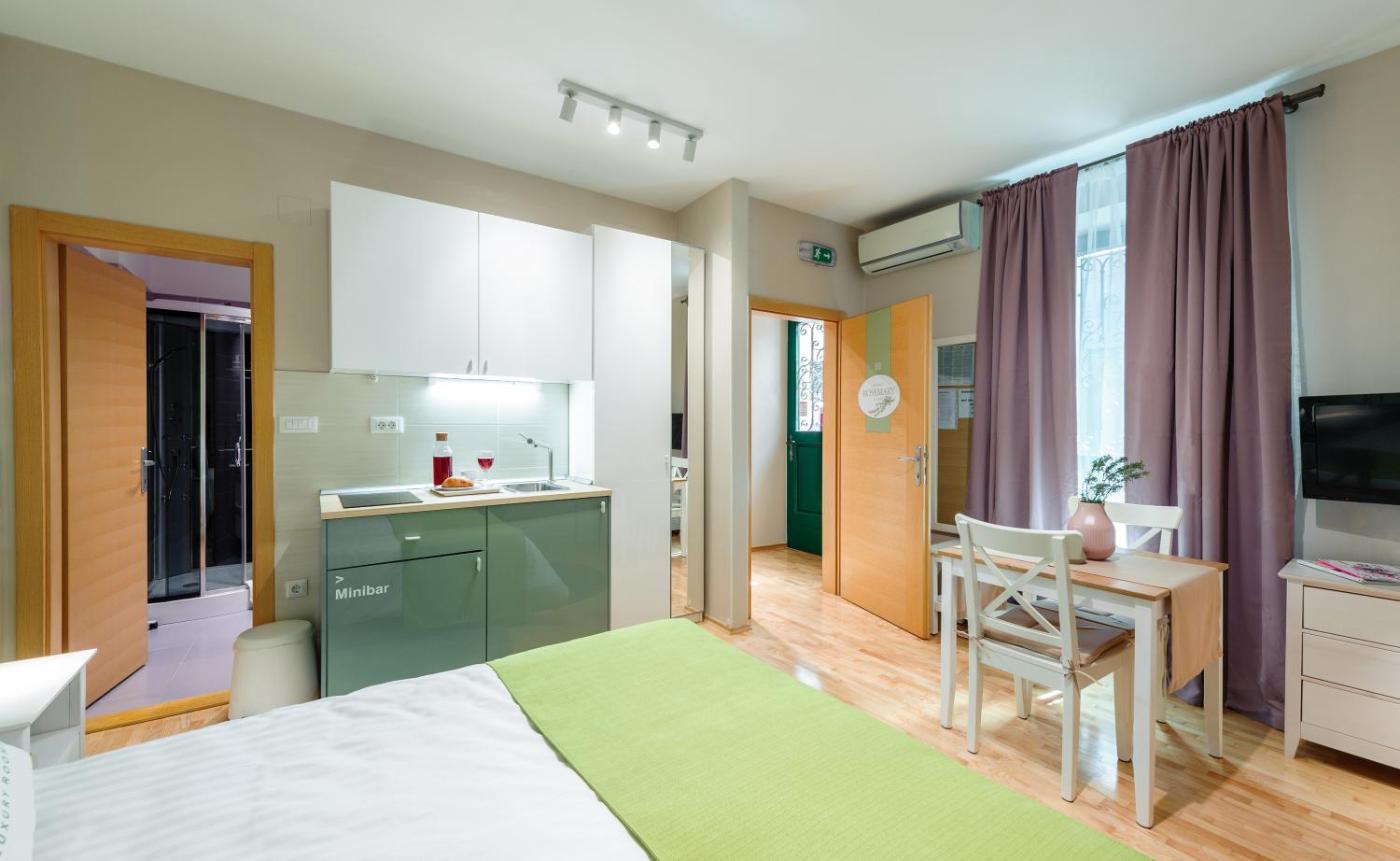 Apartament typu studio. This studio apartment includes a dining area and a TV with cable channels. There is a fully- equipped kitchenette with a refrigerator and kitchenware. The private bathroom comes with a shower, a hairdryer and free toiletries. Apartament - 2 osobowy. Powierzchnia pokoju ok.: 25 mkw. ;