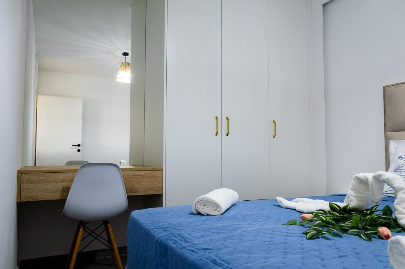 W apartamencie zapewniono taras, sypialnię (1), salon z telewizorem z płaskim ekranem, kuchnię ze standardowym wyposażeniem, takim jak lodówka i zmywarka, a także łazienkę (1) z prysznicem. Goście mogą podziwiać widok na morze. W apartamencie zapewniono ręczniki i pościel.