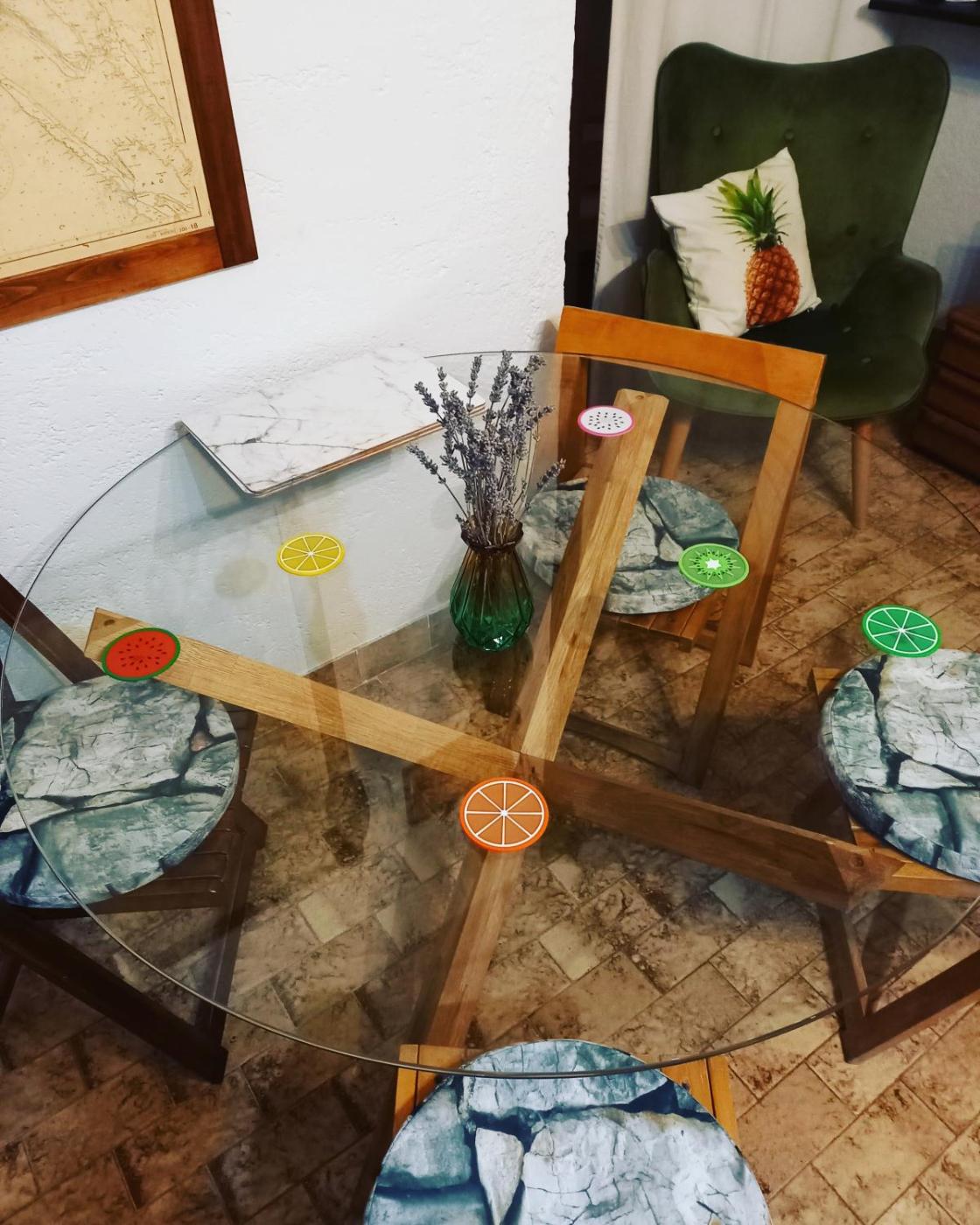 W apartamencie zapewniono kilka sypialni (2), łazienkę (1), pościel, ręczniki, jadalnię oraz kuchnię z pełnym wyposażeniem. Do dyspozycji Gości jest także telewizor z płaskim ekranem z dostępem do kanałów satelitarnych oraz taras z widokiem na morze.