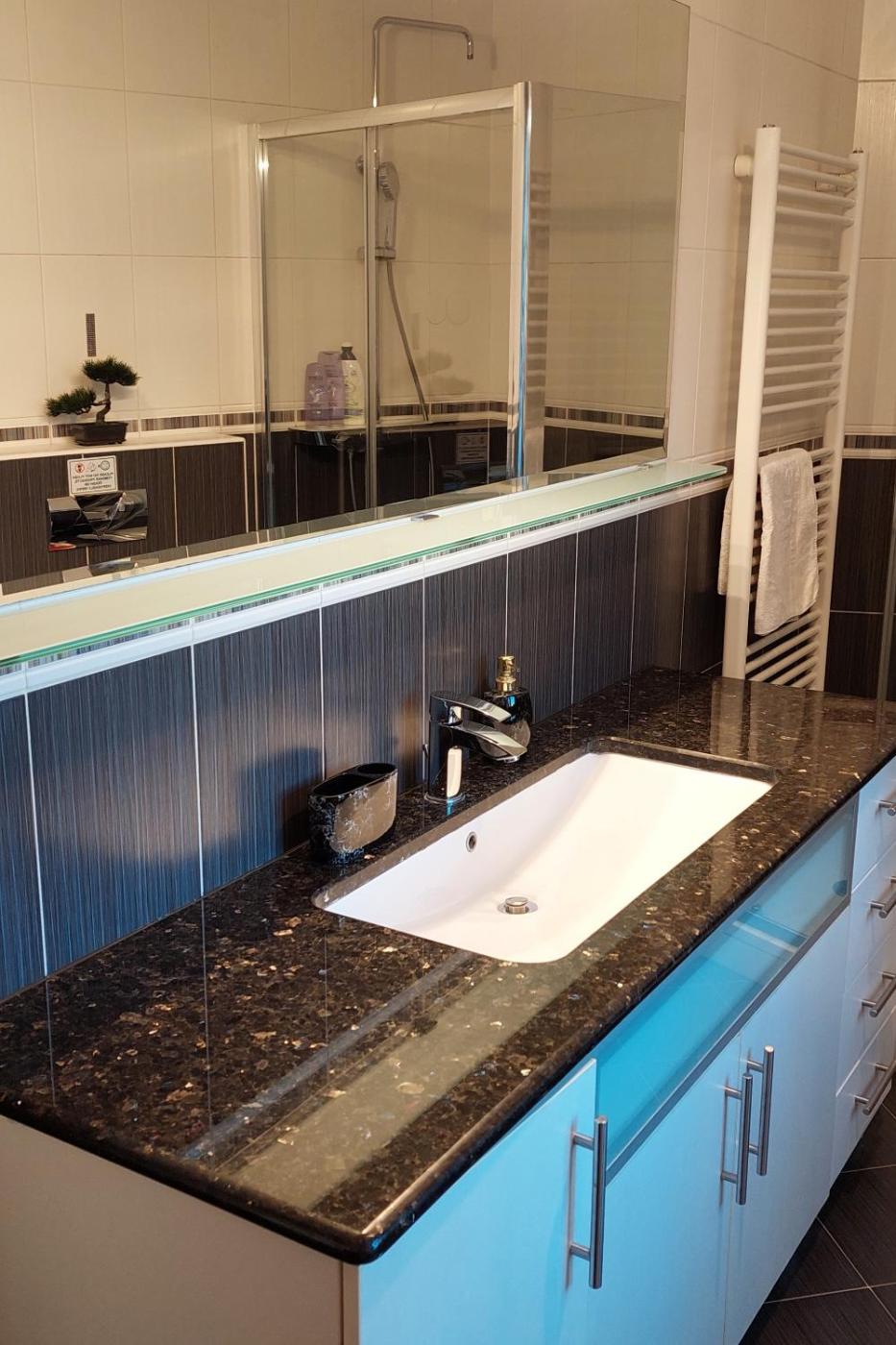 W apartamencie zapewniono kilka sypialni (2), kuchnię z lodówką oraz zmywarką, a także łazienkę (1) z prysznicem.