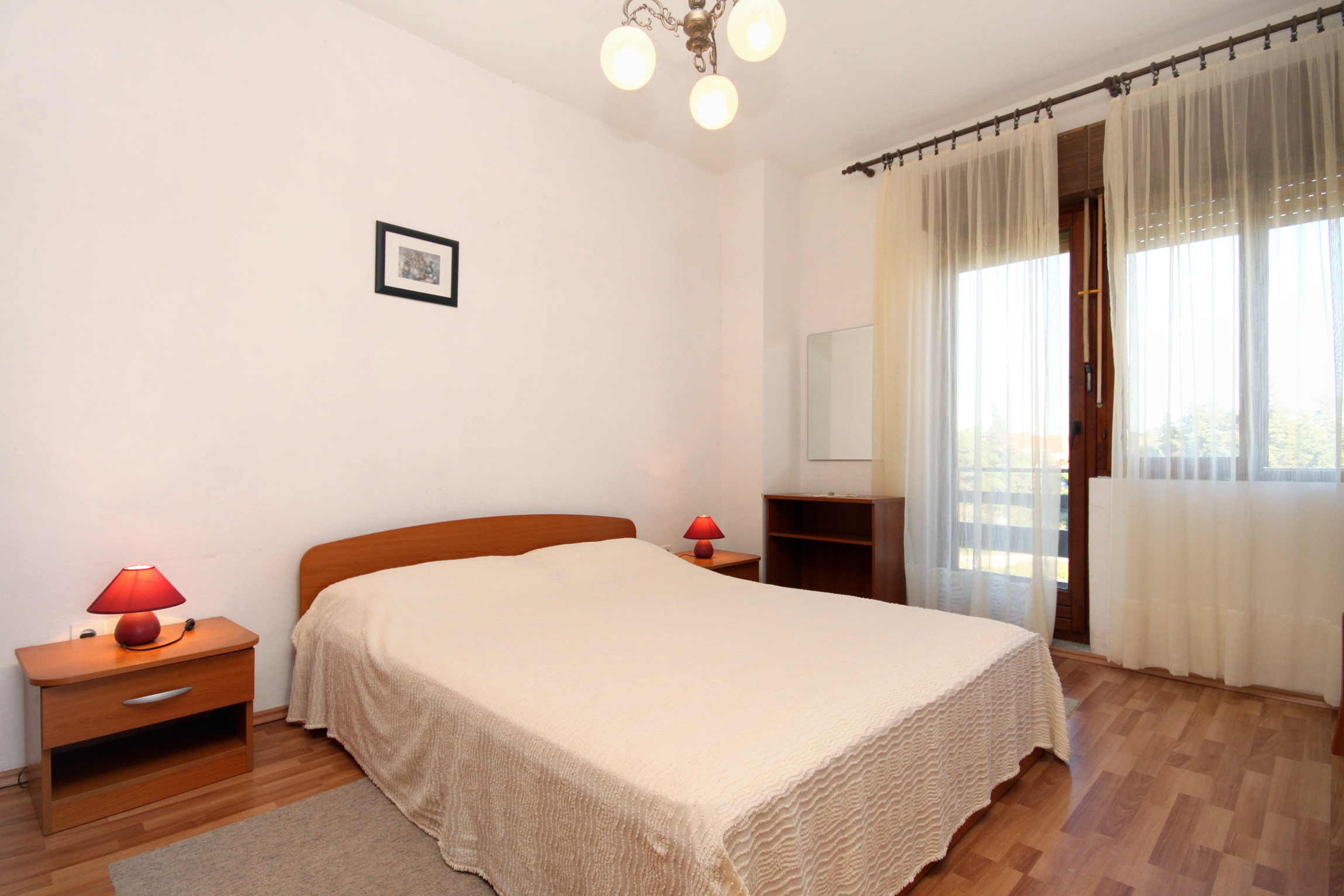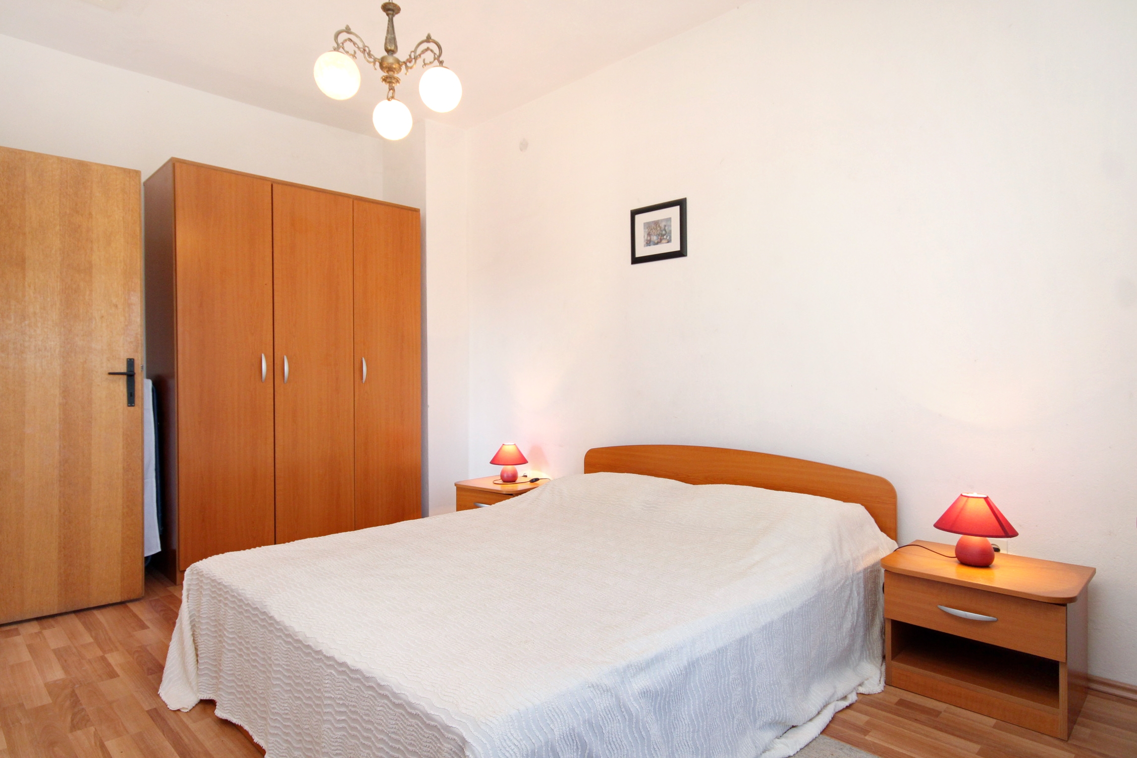 Apartament może przyjąć 5 gości. Łóżka znajdują się w sypialniach, których jest 2, na powierzchni 42m2. Goście mają dostęp do tarasu, by korzystać z ciepłych, letnich wieczorów. Możliwość przygotowywania posiłków poprzez korzystanie ze wspólnego grilla. WLICZONE W CENĘ: taksa pobytowa, sprzątanie końcowe, klimatyzacja, parking, internet, miejsce do cumowania łodzi. OBOWIĄZKOWE KOSZTY DODATKOWE: dopłata za krótki termin (procent dopłaty w zalezności od liczby noclegów: 30% - 1, 20% - 2, 10% - 3). Dostępność dodatkowych usług w rezerwowanym terminie oraz ich cenę (jeśli nie jest podana) należy sprawdzić wcześniej. Za dodatowe usługi, które nie zostały uwzględnione w kalkulacji ceny, płaci się bezpośrednio właścicielowi obiektu, pod warunkiem śe gość korzysta z tych usług.