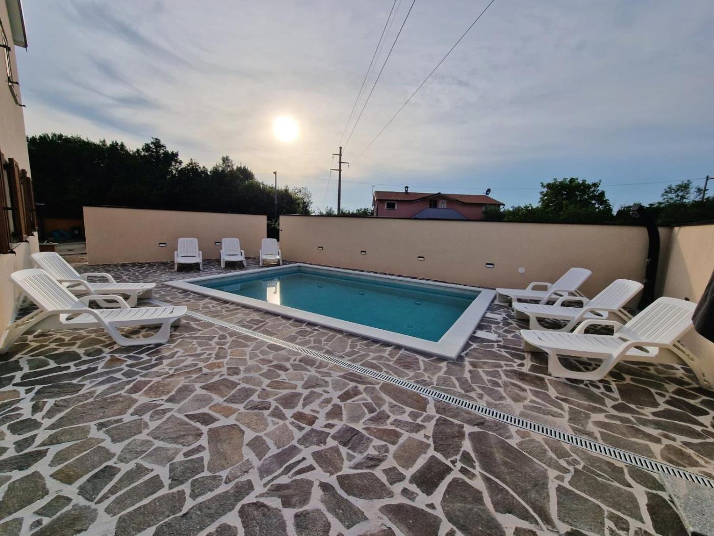 Obiekt The Setting Sun położony jest w miejscowości Umag i oferuje sezonowy odkryty basen oraz klimatyzację. Odległość ważnych miejsc od obiektu: Park wodny Istralandia – 13 km, Zamek San Giusto – 44 km. Oferta apartamentu obejmuje prywatny basen, ogród, sprzęt do grillowania, bezpłatne Wi-Fi oraz bezpłatny prywatny parking.