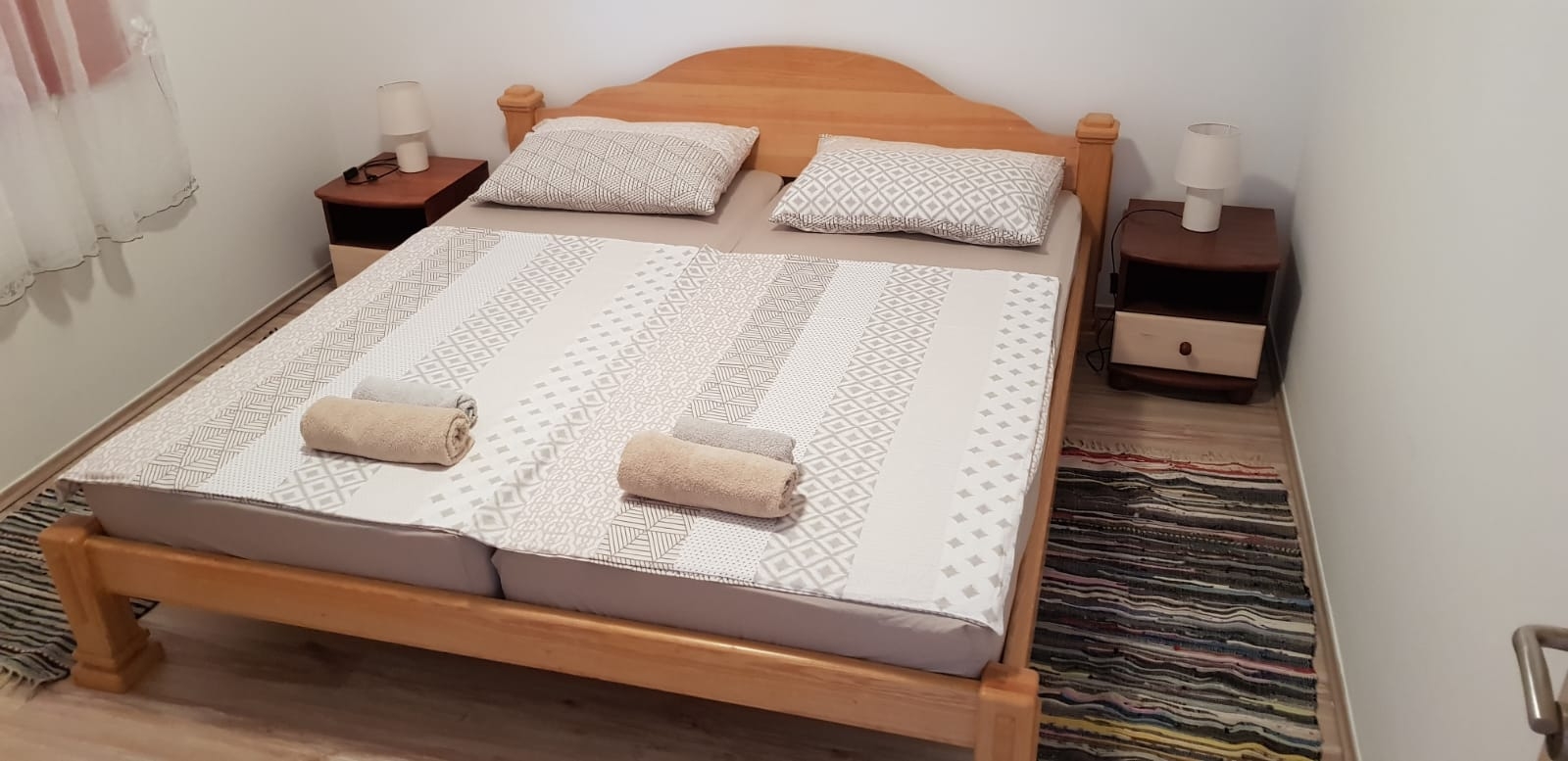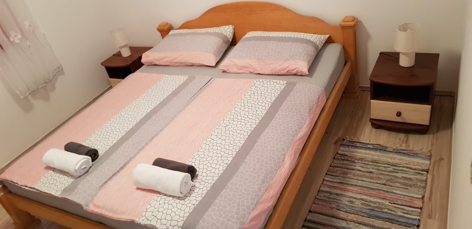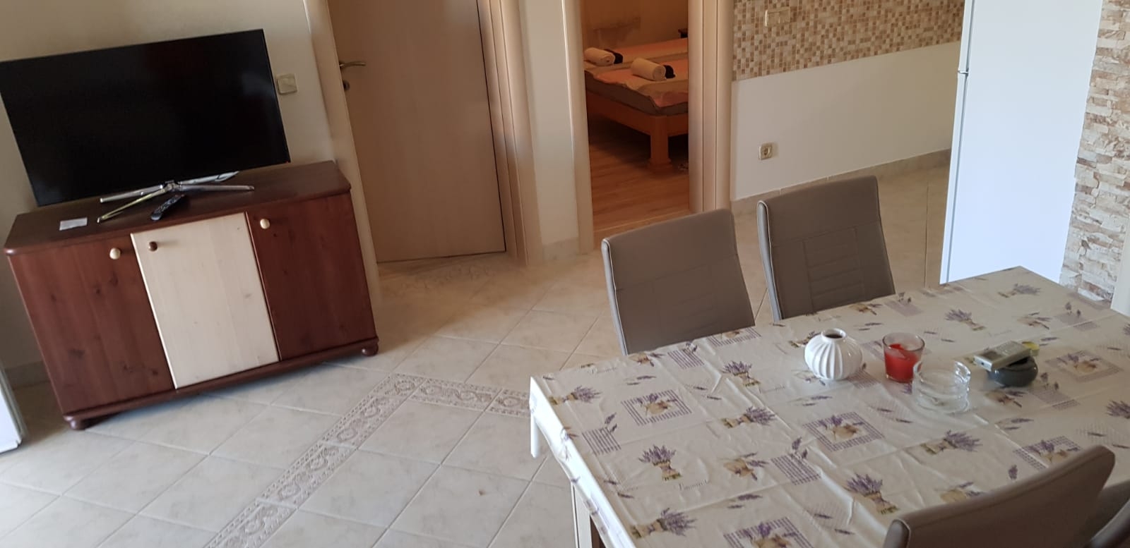 Apartament może przyjąć 4 gości. Łóżka znajdują się w sypialniach, których jest 2, na powierzchni 49m2. Goście mają dostęp do tarasu, by korzystać z ciepłych, letnich wieczorów. Możliwość przygotowywania posiłków poprzez korzystanie ze wspólnego grilla. WLICZONE W CENĘ: taksa pobytowa, sprzątanie końcowe, klimatyzacja, parking, internet, łóżeczko dziecięce, suszarka do włosów. NIEOBOWIĄZKOWE KOSZTY DODATKOWE: pranie bielizny (10,00 € pranie). Dostępność dodatkowych usług w rezerwowanym terminie oraz ich cenę (jeśli nie jest podana) należy sprawdzić wcześniej. Za dodatowe usługi, które nie zostały uwzględnione w kalkulacji ceny, płaci się bezpośrednio właścicielowi obiektu, pod warunkiem śe gość korzysta z tych usług.