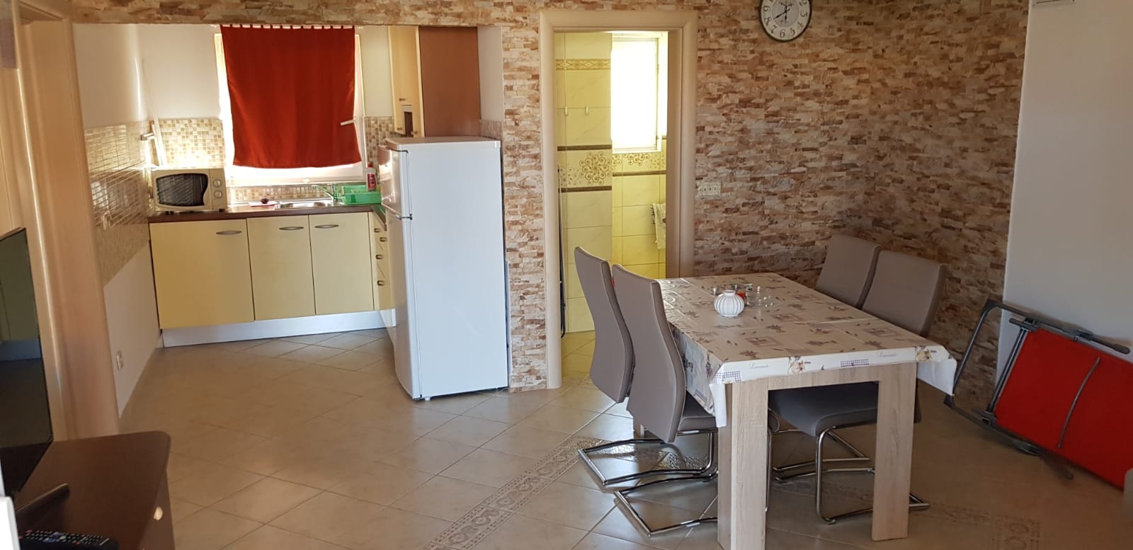 Obiekt 18407 w mieście Vir, Vir - Północna Dalmacja ma kwatery typu Apartament (4) i oddalona jest 200 m od morza. Plaża najbliższa obiektowi jest żwirowa. W tym obiekcie znajduje się więcej kwater, więc mogą Państwo oczekiwać spotkań z innymi gośćmi. Gospodarze mieszkają w obiekcie. Właściciel nie ma obowiązku przyjąć dodatkowych niezgłoszonych osób ani zwierząt domowych, dlatego też trzeba je wcześniej zgłosić.ZAWARTOŚĆ Teren wokół domu (Uporządkowane), Podwórko (150m2), Parking (Liczba miejsc parkingowych: 4, Odległość od obiektu: Na podwórku), Grill: wspólny, WiFi Internet, Pranie bielizny, Suszarka do włosów, Łóżeczko dziecięce LOKALIZACJA I DOSTĘP Obiekt znajduje się przy lokalnej drodze Pomiędzy obiektem i plażą znajduje się lokalna droga Możliwość dojazdu samochodem: Tak Obiekt znajduje się w relatywnie cichej okolicy ODLEGŁOŚCI Morze: 200 m Plaża: 200 m Centrum: 3,5 km Sklep: 650 m Pierwsza pomoc: 8 km Apteka: 3,8 km Kantor: 650 m Bankomat: 1,1 km Informacje turystyczne: 3,5 km Lotnisko: 33 km Targ: 3,5 km