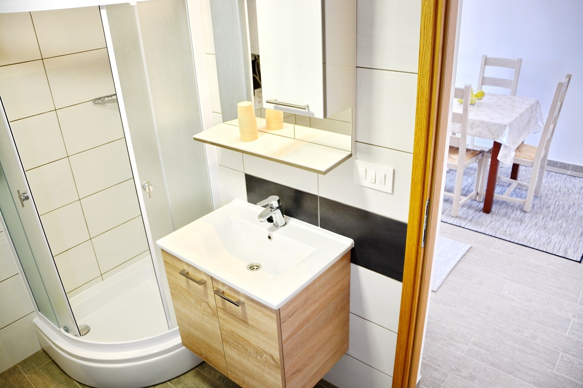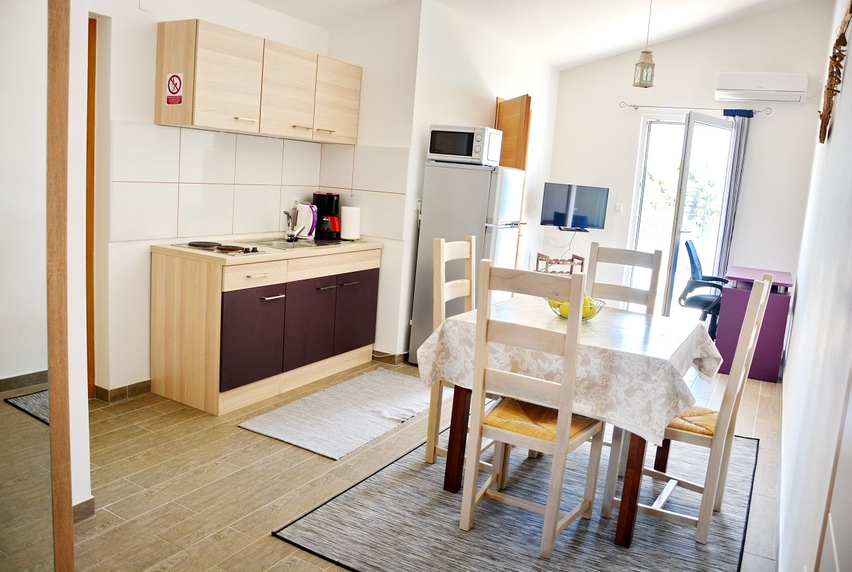 Apartament może przyjąć 5 gości. Łóżka znajdują się w sypialniach, których jest 2, oraz w jadalni, na powierzchni 39m2. Z apartamentu roztacza się widok na morze. Możliwość przygotowywania posiłków poprzez korzystanie ze wspólnego grilla. Rezerwowana kwatera ma taras wspólny z inną kwaterą. WLICZONE W CENĘ: taksa pobytowa, sprzątanie końcowe, klimatyzacja, parking, internet, rower, łóżeczko dziecięce, żelazko, deska do prasowania, suszarka do włosów. Dostępność dodatkowych usług w rezerwowanym terminie oraz ich cenę (jeśli nie jest podana) należy sprawdzić wcześniej. Za dodatowe usługi, które nie zostały uwzględnione w kalkulacji ceny, płaci się bezpośrednio właścicielowi obiektu, pod warunkiem śe gość korzysta z tych usług. Zniżki od ceny podstawowej: bezpłatny dzień 14=13 (przy pobycie, trwającym co najmniej 14 dni, otrzymujecie jeden bezpłatny dzień na pobyt do 31.12.2026).