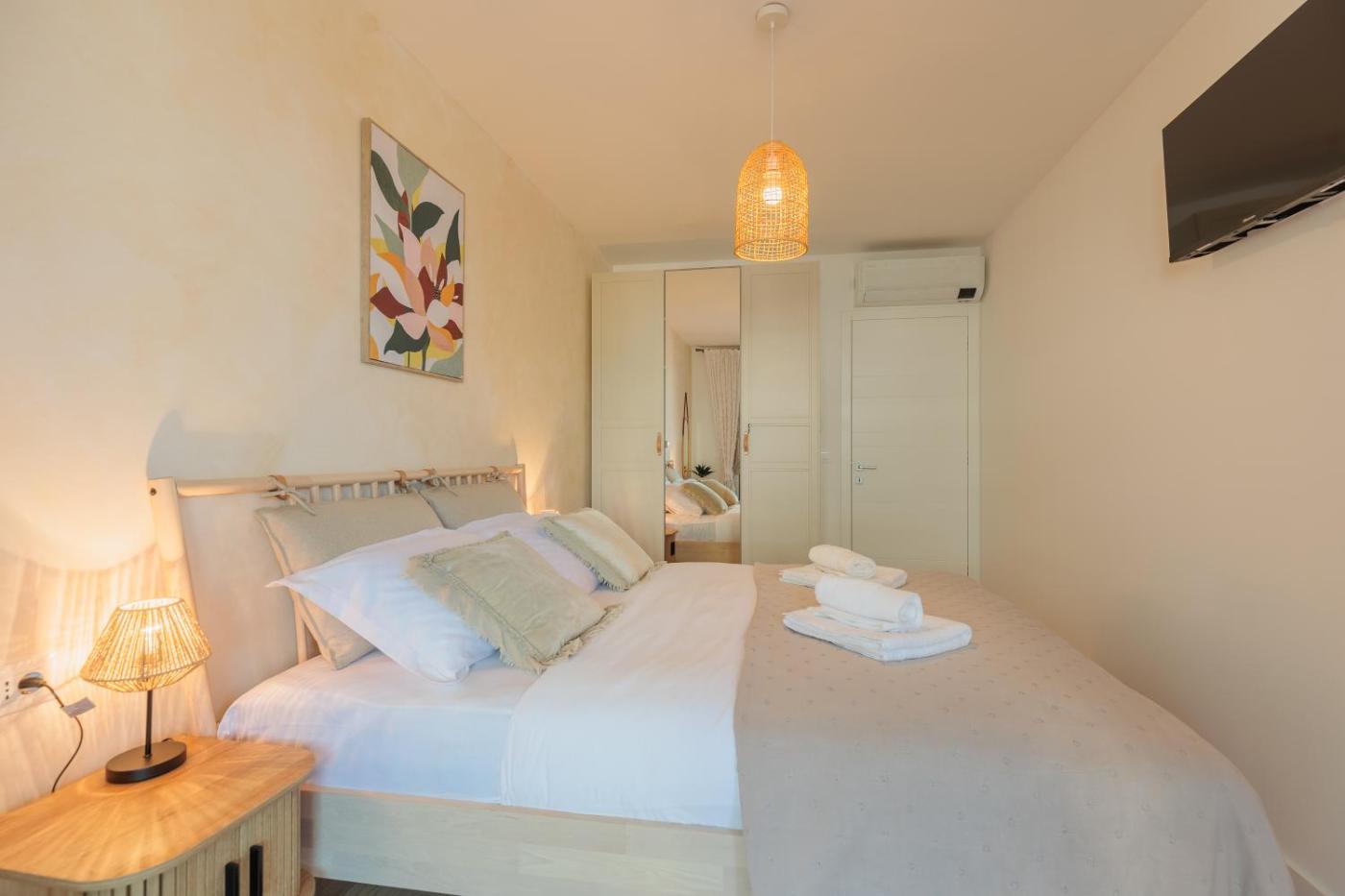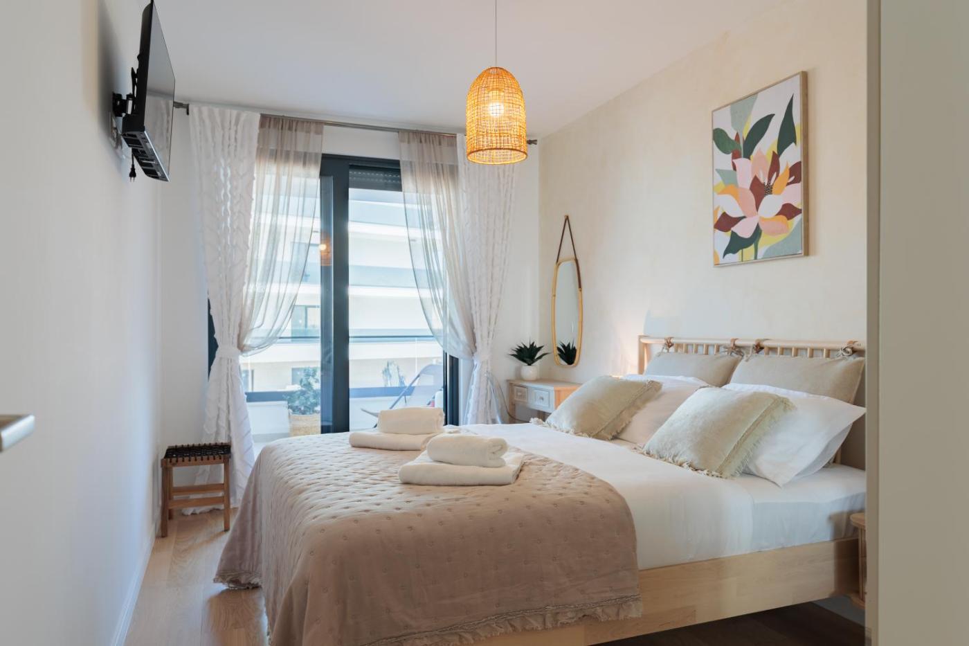 Każda opcja zakwaterowania ma balkon i wyposażona jest w telewizor z płaskim ekranem oraz pralkę. We wszystkich opcjach znajduje się kuchnia z pełnym wyposażeniem, w tym lodówką, jak również część wypoczynkowa z rozkładaną sofą oraz prywatna łazienka z prysznicem i bezpłatnym zestawem kosmetyków. Wyposażenie obejmuje również zmywarkę, ekspres do kawy i czajnik.