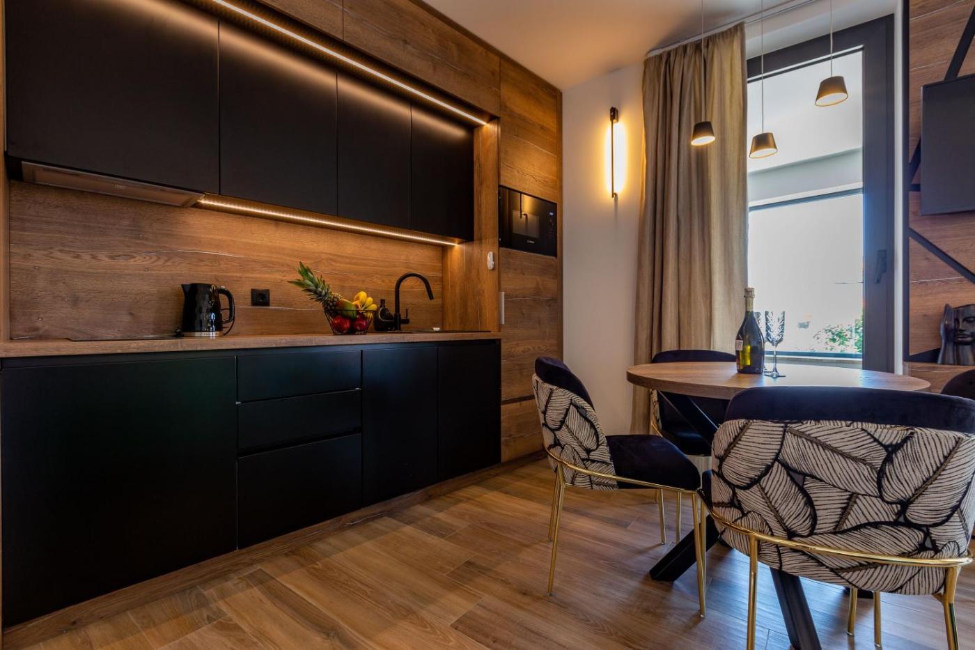 Apartment with Balcony and Private Hot Tub. This apartments standout features are the hot tub and spa bath. Boasting a private entrance, this air-conditioned apartment includes 1 living room, 1 separate bedroom and 1 bathroom with a walk-in shower and a hairdryer. The well-fitted kitchen has a stovetop, a refrigerator, a dishwasher and kitchenware. Featuring a balcony with city views, this apartment also offers soundproof walls and a flat-screen TV with cable channels. The unit has 2 beds. Apartament - 3 osobowy. Powierzchnia pokoju ok.: 57 mkw. ;