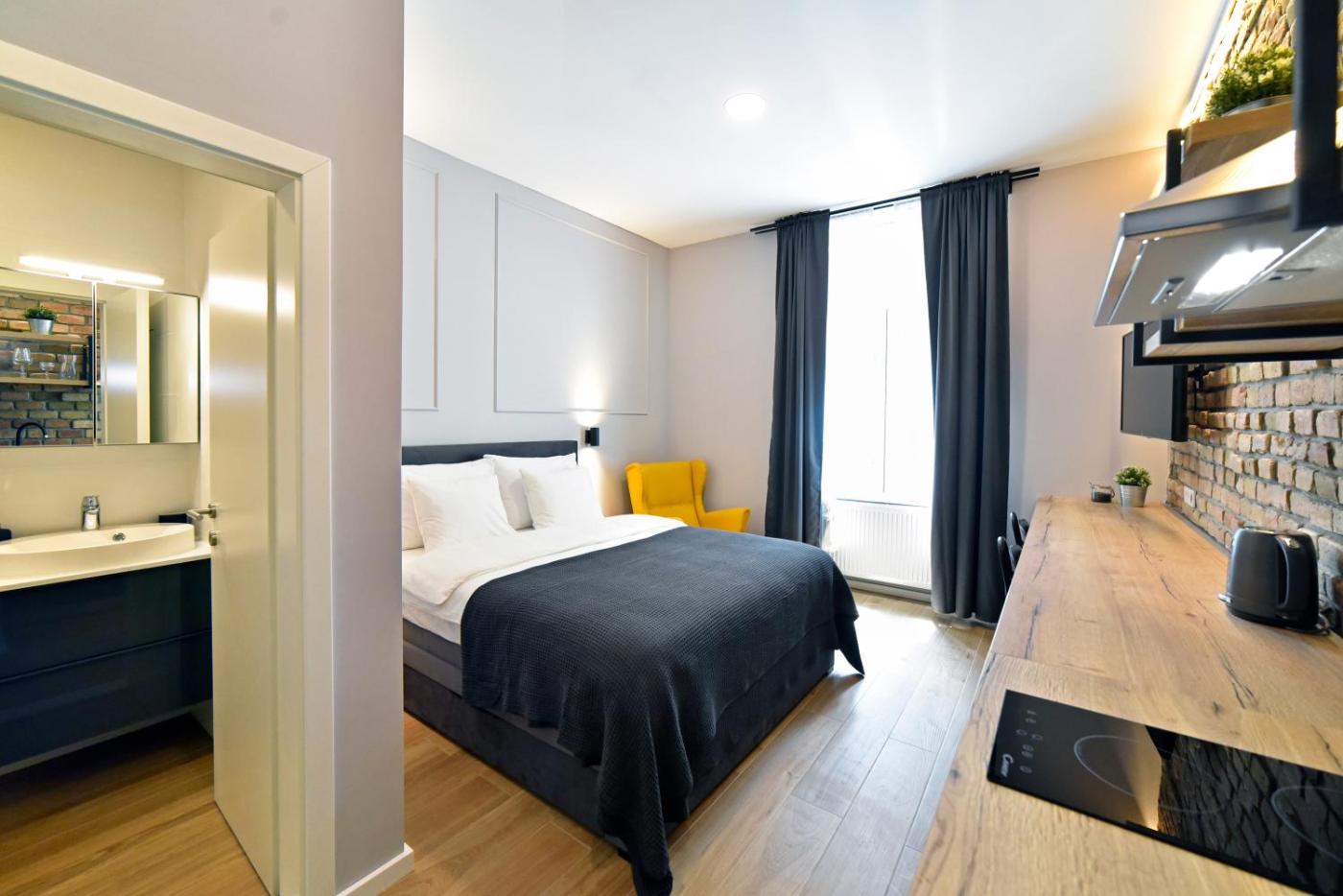 Apartament typu studio. The apartment has 1 bedroom and 1 bathroom with a shower and free toiletries. Meals can be prepared in the well-fitted kitchen, which features a stovetop, a refrigerator, kitchenware and a toaster. The air-conditioned apartment features a flat-screen TV with cable channels, a washing machine, soundproof walls, a seating area as well as city views. The unit has 2 beds. Apartament - 3 osobowy. Powierzchnia pokoju ok.: 28 mkw. ;
