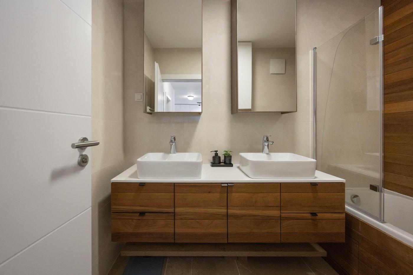 Oferta apartamentu obejmuje kilka sypialni (2), salon, kuchnię z pełnym wyposażeniem, w tym lodówką i ekspresem do kawy, a także łazienkę (1) z wanną oraz bezpłatnym zestawem kosmetyków. W apartamencie zapewniono ręczniki i pościel.